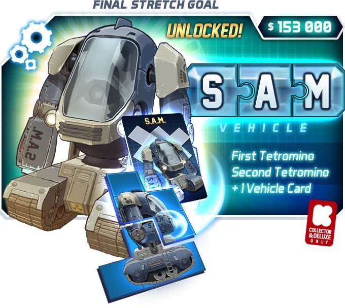 Il fallait ainsi investir dans les versions Deluxe et Collector pendant la campagne pour bénéficier de missions, gadgets et secteurs supplémentaires, d’un dé, de puzzles solo, d’un cinquième et sixième joueur et donc des véhicules… C’est une stratégie que je ne remets pas en cause, tant que l’on n’a pas l’impression que quelque chose a été volontairement retranché de la version la plus basique du titre, ce que peut tout de même inspirer l’absence complète des véhicules pour ceux qui ont un peu pratiqué l’application et ont pris tant de plaisir en dragon ou en méca…