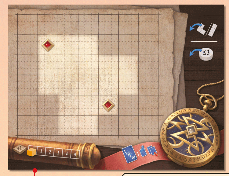 Les 84 fragments runiques (de simples carrés) et un nombre de fragments d’esprit dépendant du nombre de joueurs forment une réserve.