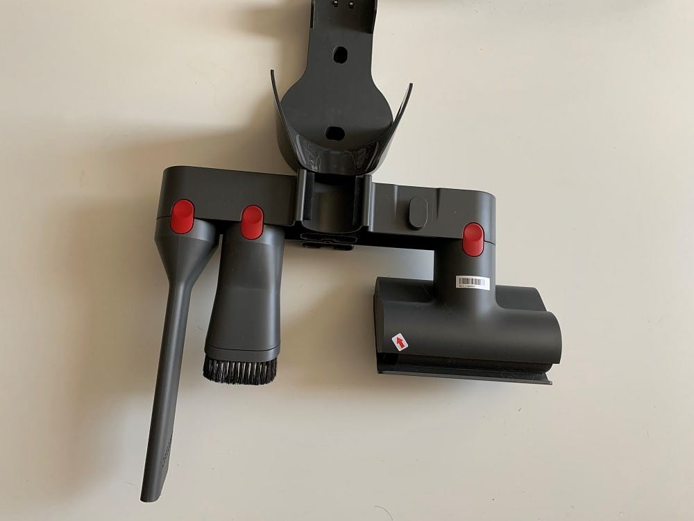 Pour ce qui est des accessoires, on privilégie bien évidemment celle prévue pour les sols durs. Cependant, j’ai eu la très agréable surprise en ce qui concerne celle pour tapis. En effet, la particularité de cette dernière est d’être dotée d’un moteur supplémentaire de 50W pour une rotation rapide des poils antistatiques. Couplé à la forme adaptée de la brosse, on obtient un outil on ne peut plus efficace pour le nettoyage en profondeur des tapis (et des arbres à chats).