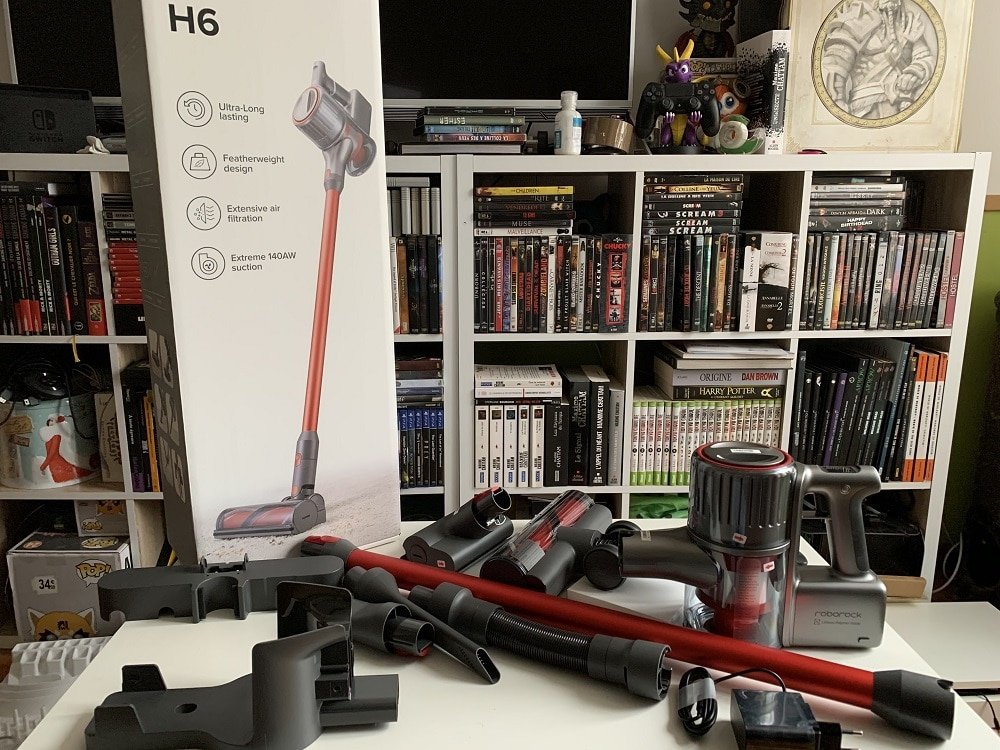 Nous vous présentions il a quelques temps le Roborock S4, un petit aspirateur robot qui a su faire ses preuves. Aujourd’hui nous restons sur le même constructeur avec le H6, un aspirateur balai sans sac créé dans le but de faciliter les tâches ménagères quotidiennes. Disposant de trois chats, je suis tenu de passer l’aspirateur une à deux fois par jours. Il me faut donc personnellement un appareil facile d’utilisation et peu encombrant.
