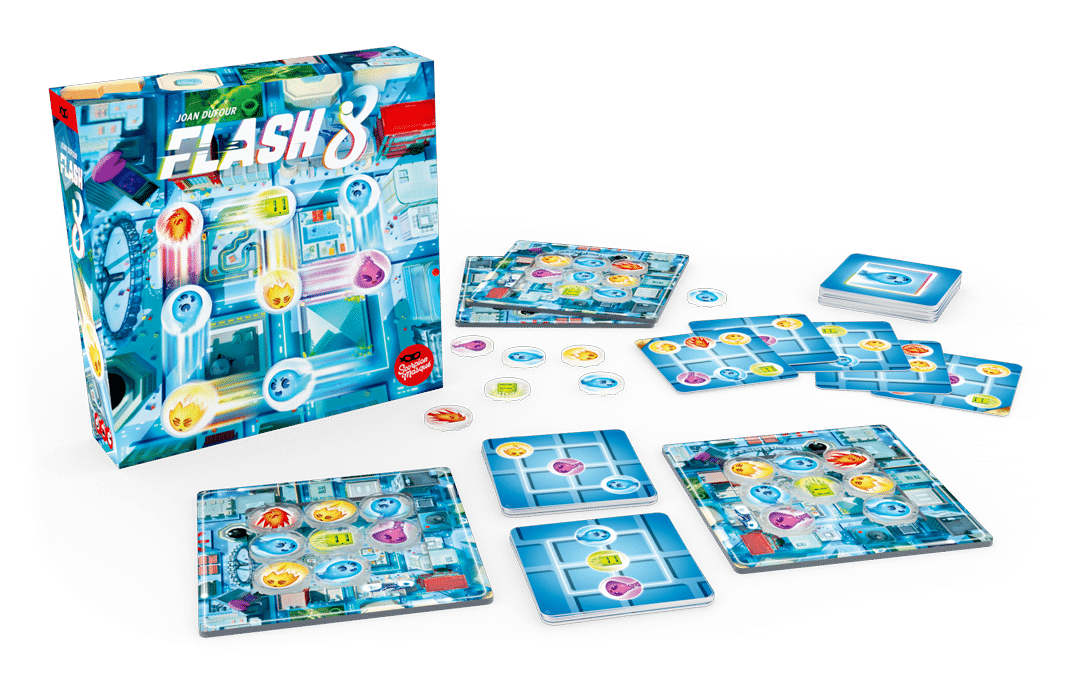 Laissons-nous donc tenter par ce Flash 8, vendu 20 euros et s’adressant à 1 à 4 joueurs de 7 ans et plus pour des parties de 10-15 minutes.