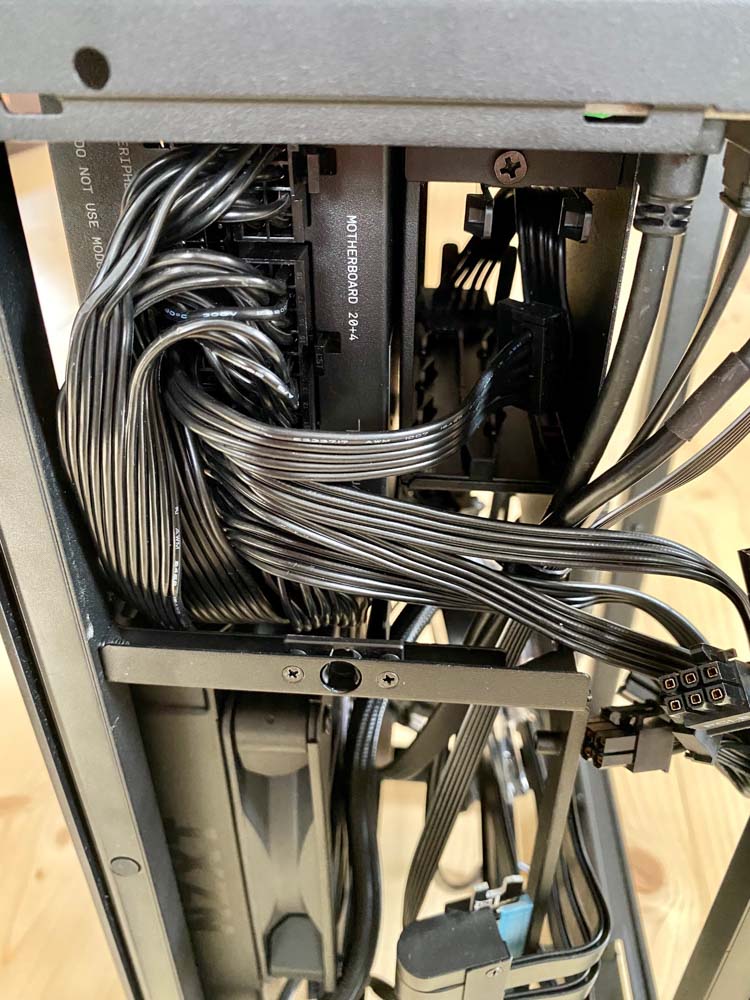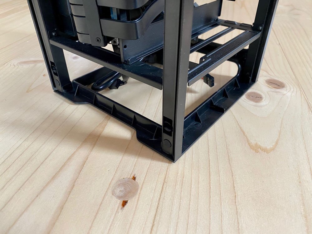 Pour accéder à la carte mère et carte graphique, tout se fait par le bas, le boitier est donc surélevé pour permettre aux câbles de passer sans souci, pour les férus de cable management, c’est le rêve.