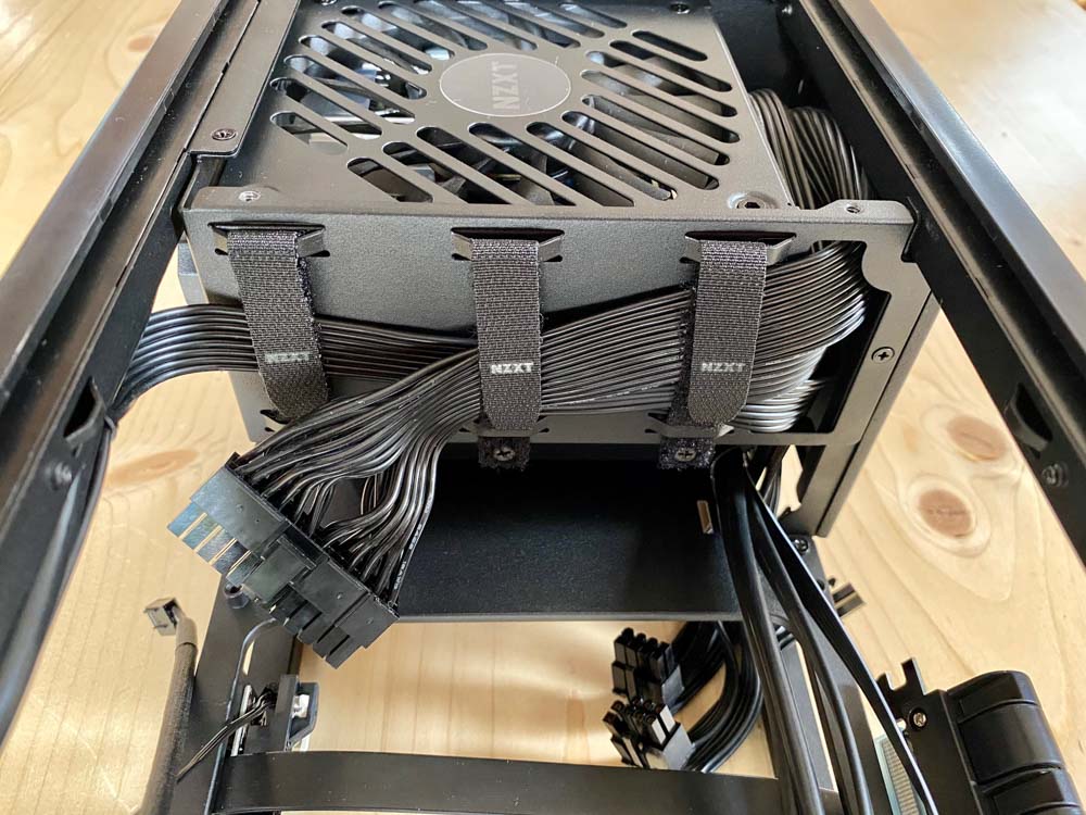 Lors de l’installation, on se rend vite compte qu’il ne faudra pas exagérer sur la hauteur de la RAM. J’ai donc utilisé des Corsair Veangeance LPX car la Dominator ne passait pas. Les câbles sont tous déjà très proprement installés et à la bonne longueur, ce qui rend le rangement de ceux-ci facile. Les tubes du watercooling sont aussi d’une longueur custom. Seul problème, le connecteur Type-C n’était pas assez long pour venir se connecter sur ma carte mère, NZXT propose d’envoyer un remplacement pour ceux qui rencontreraient le même problème qui ne surviendra que pour les tous premiers boitiers en production.