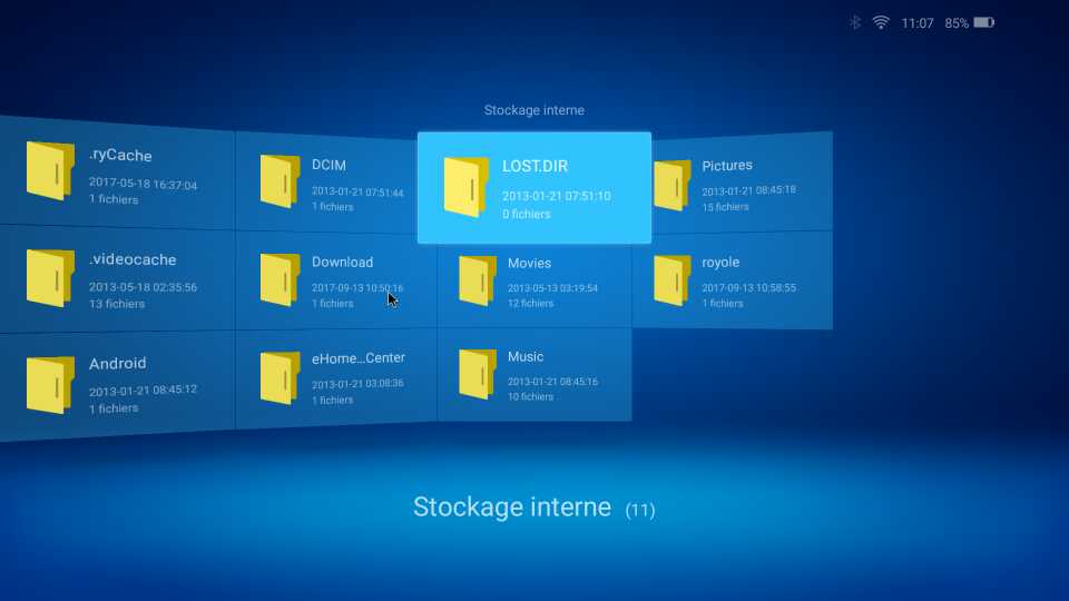 - Vidéos, musiques et images vous permettent de parcourir les fichiers que vous aurez chargés sur la Moon Box.