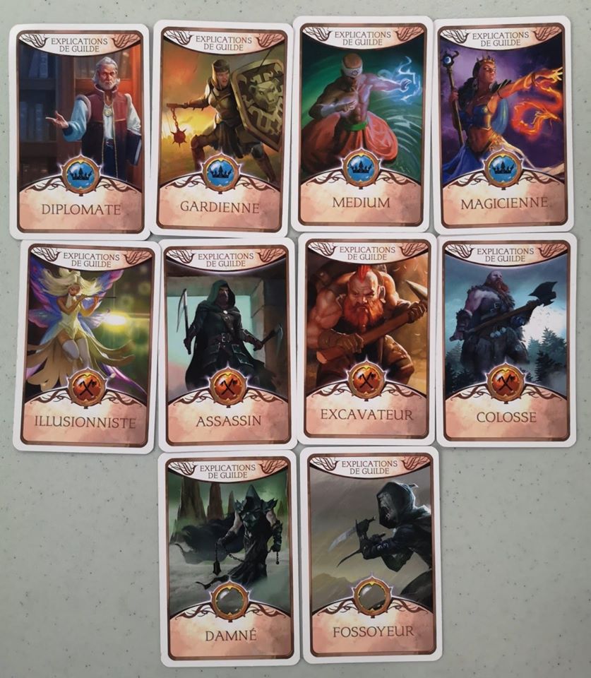 - le diplomate (2 gemmes) échange la carte supérieure d’une guilde avec une carte supérieure d’une guilde d’un autre joueur.