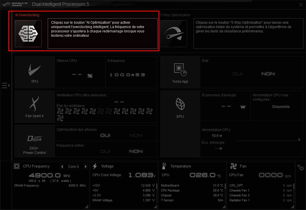 Asus « AI Overclocking » dans le logiciel AI Suite III
