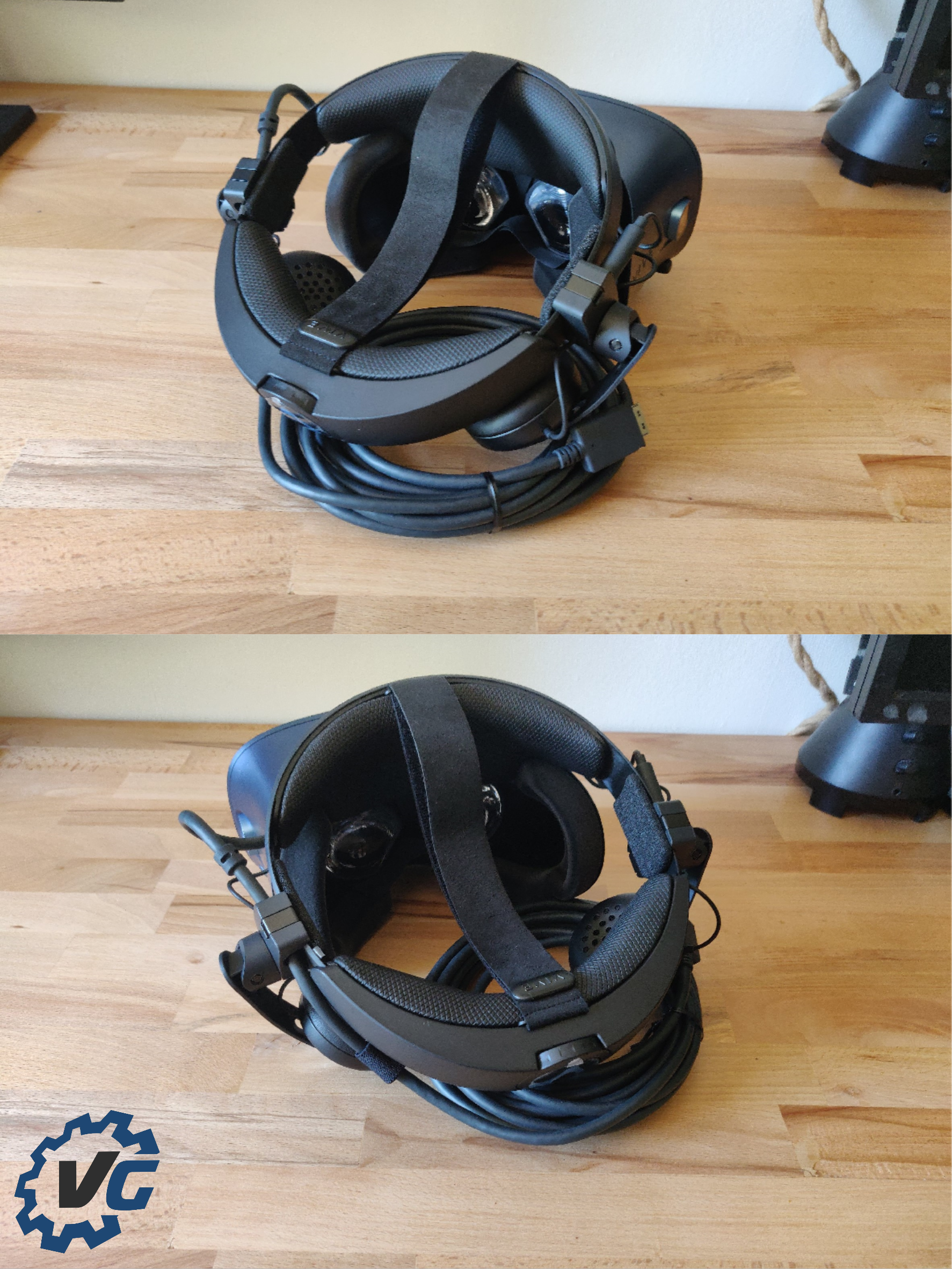 Autre information, sachez que le Vive Cosmos est disponible depuis le mois d’octobre 2019 et ce au prix de 799 € en moyenne. Une fois n’est pas coutume désormais dans le monde de la VR, on retrouve ce fameux halo permettant le maintien du casque sur la tête, une bonne nouvelle donc vu le poids du joujou, affichant quand même 670g sur la balance ! D’ailleurs, si le casque est assez confortable dans son ensemble, il peut parfois faire mal, notamment au niveau des cervicales après une trop longue session de jeu. Je précise que nous avons été deux à le tester et que seulement une des deux personnes a expérimenté cette petite gêne.