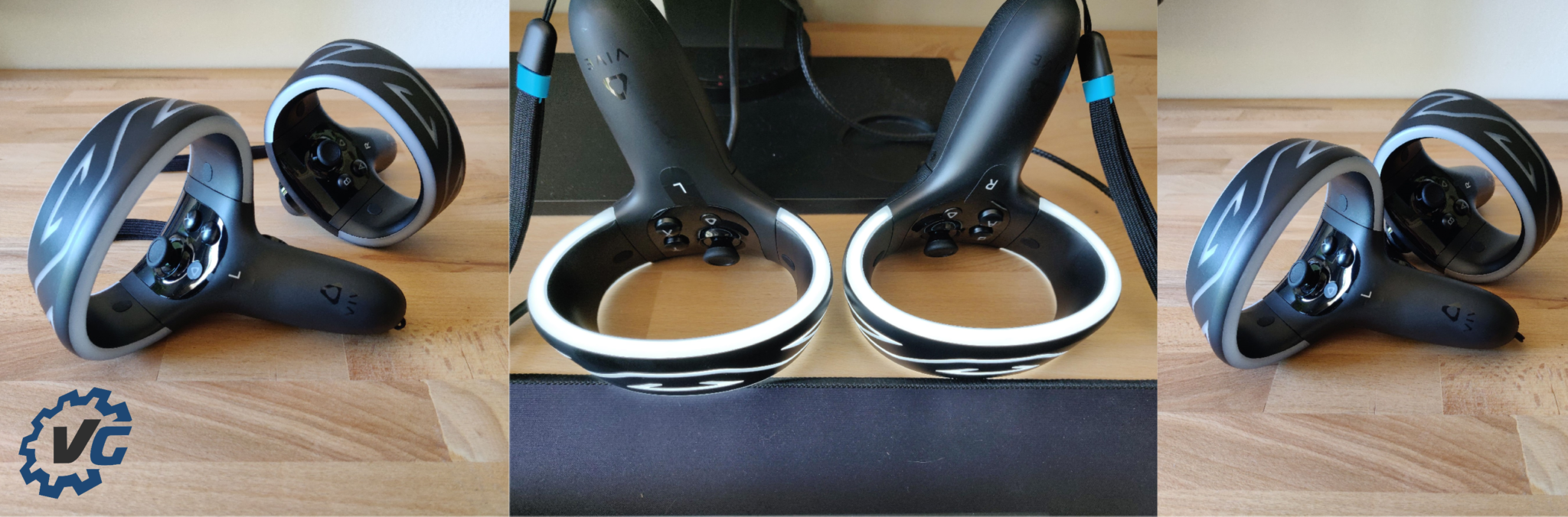 Le Cosmos est fourni avec deux manettes assez volumineuses mais intuitives à suivi de mouvement qui proposent une prise en main agréable. Lumineuses, ces dernières disposent d’un d’un arceau lumineux beaucoup trop énergivores ! Déjà, on parle ici de deux piles AA pour chaque manette… gros point noir, avec une autonomie ne dépassant pas les 7 heures ! Je suis donc passée très très vite aux piles rechargeables, après avoir épuisés celles fournies avec le casque. Je n’ai pas non plus trouvé comment éteindre les manettes, histoire d’économiser un peu la batterie. Cela ne semble pas possible.