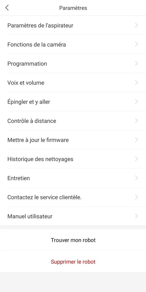 L’application est très pratique, puisqu’elle dispose d’un grand nombre d’options. Vous aurez par exemple la possibilité de consulter l’historique de vos nettoyages (et de vérifier si votre robot a rencontré des obstacles par exemple !). De même, vous pouvez y déterminer la programmation des nettoyages. C’est depuis cet endroit que vous pourrez désigner un point sur la carte de votre appartement afin d’y envoyer votre aspirateur pour qu’il nettoie la zone ou même contrôler ce dernier à distance. Vous avez par ailleurs accès à un onglet d’entretien qui vous permet de vérifier la durabilité des éléments qui constituent votre S6 MaxV. Vous avez accès au manuel d’utilisation depuis votre application (pratique pour ceux ne gardant pas les notices à portée de main). Vous pouvez de plus paramétrer la voix et le volume, et encore bien d’autres options.