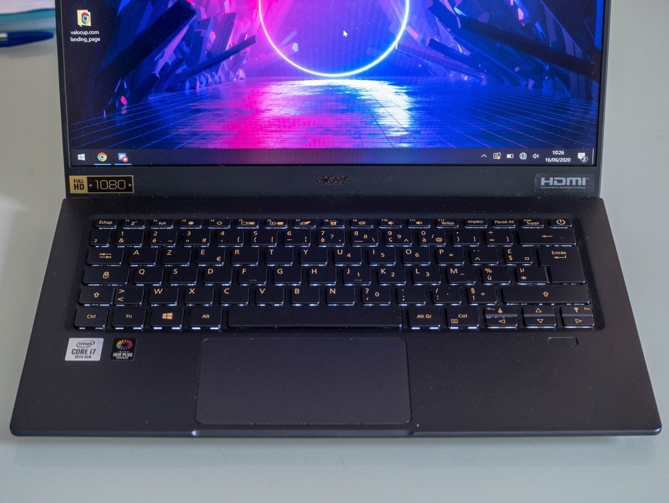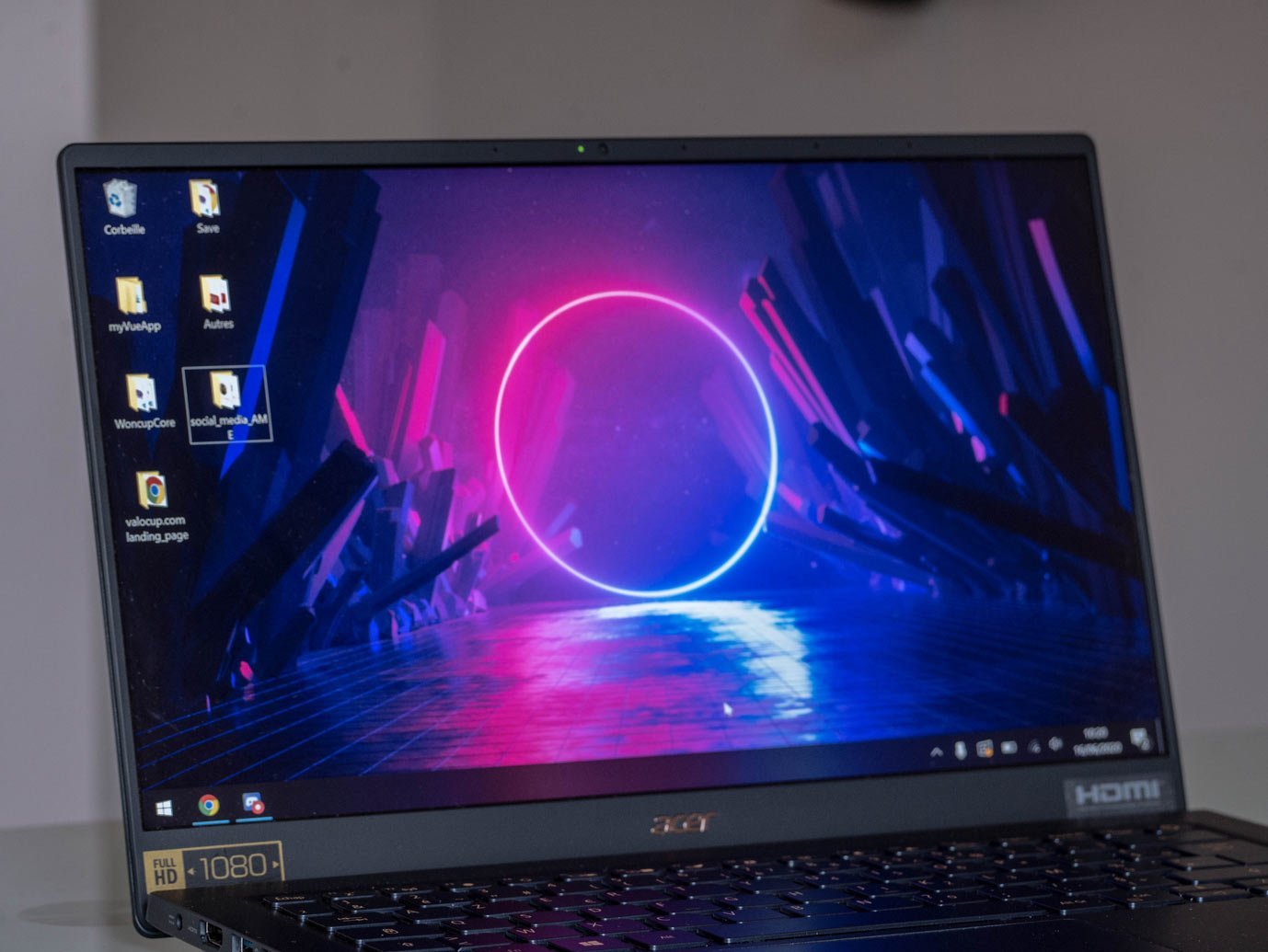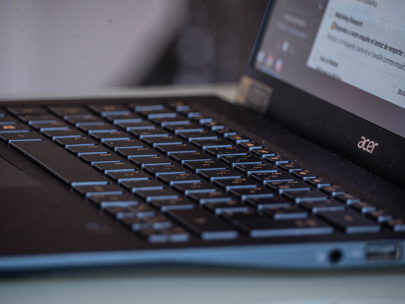 Il y a globalement tout ce qu’il faut et le Swift 5 se paie même le luxe d’intégrer un écran tactile de très bonne facture et très agréable au quotidien. La qualité de l’écran (14 pouces) est amplement satisfaisante : les angles de visions sont très bons, la résolution (FullHD) très correcte et les couleurs bien retranscrites. Il vire de temps en temps vers le bleu suivant les conditions lumineuses extérieures néanmoins.