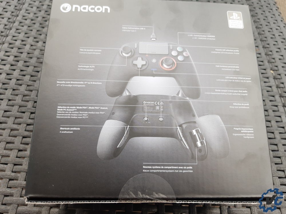 La boîte contenant la RPC3 est classique mais s’attelle à mettre en avant les qualités de la manette. Si le recto de la boîte reste sobre en présentant la manette et ses principales caractéristiques (manette filaire, joysticks asymétriques, dotée de modes programmables), le verso nous présente plus précisément les propriétés de la manette en insistant sur les améliorations que Nacon lui a amené par rapport à sa version 2. La boîte est simple et dotée d’un design très sobre, mais on ne peut targuer Nacon d’un manque de précision. Toutes les caractéristiques de la manette sont présentées rapidement.