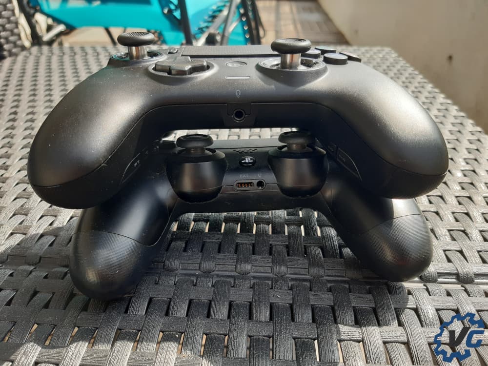 Dès les première parties, certaines des qualités de la RPC3 sautent m’ont « sauté aux mains ». En comparaison avec une manette PS4 classique, les boutons plus larges et plus rapprochés permettent d’éviter de grands mouvements de pouce quand les sticks plus hauts permettent une précision accrue, notamment lorsque j’ai joué à des FPS. Les gâchettes R2 et L2 répondent parfaitement et savent s’adapter au jeu de par leur possibilité de personnalisation. On s’amuse donc à tester les différentes configurations pour les gâchettes et joysticks (ainsi que les différents poids) afin de trouver la plus adaptée à sa façon de jouer. L’asymétrie des joysticks rend les FPS consoles bien plus ergonomiques (je ne comprends toujours pas pourquoi Sony s’entête avec ses joysticks symétriques). Enfin, le fait d’avoir quatre nouveaux boutons laissent au premier abord rêveur.