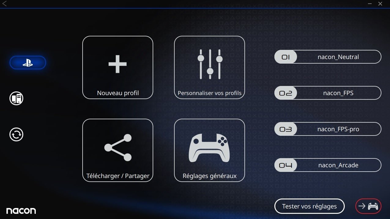 Le logiciel téléchargeable sur le site de Nacon permet toute forme de personnalisation, ou presque. Si lire le manuel d’instructions est plus que conseillé pour un néophyte de ce genre de logiciels tel que moi, on comprend rapidement la grande profondeur de fonctionnalités que ce dernier propose. Nacon laisse en effet une grande marge de manœuvre au joueur afin d’adapter les réponses de la manette à sa façon de jouer et/ou aux différents jeux auxquels il sera confronté. Le logiciel permet de créer plusieurs profils différents (profils que vous pourrez partager. Vous pourrez ainsi télécharger les profils d’autres joueurs aisément) interchangeables très rapidement.