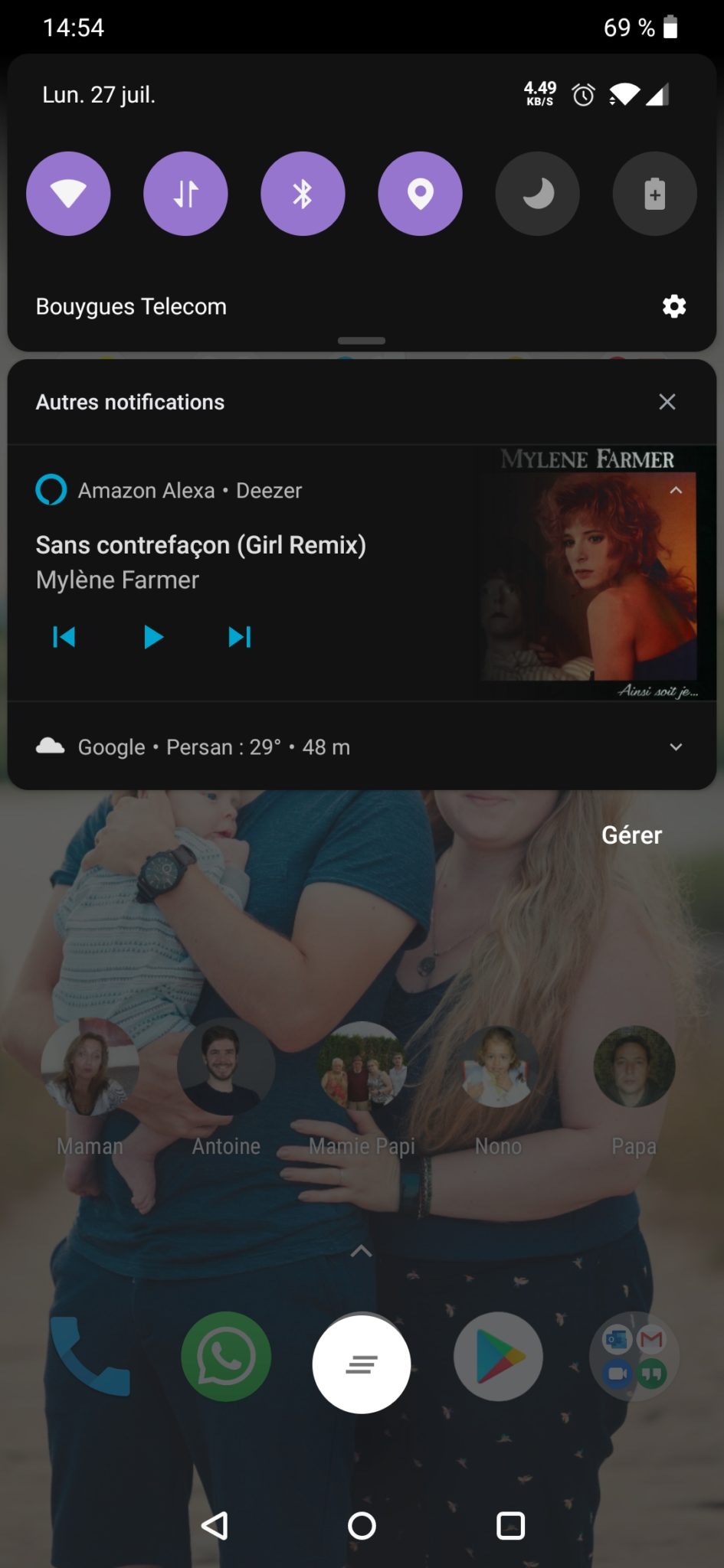Deuxième et dernier bémol, les notifications qui reviennent avec la musique, que ça soit Deezer par exemple, ou bien France Inter via sa skill, et tout autre radio via TuneIN. Même si vous êtes loin de votre véhicule, qu’il est éteint et que Echo Auto aussi par conséquent, la notification revient inlassablement. J’ai même tenté de dire à Alexa : « Arrête la musique » avant d’éteindre le contact pour tenter d’enrayer le problème, mais rien à faire. Dans ces cas là, nous sommes obligés de redémarrer le téléphone. Et sans surprise, ces notifications intempestives consomment beaucoup de batterie si on ne redémarre pas rapidement son smartphone.
