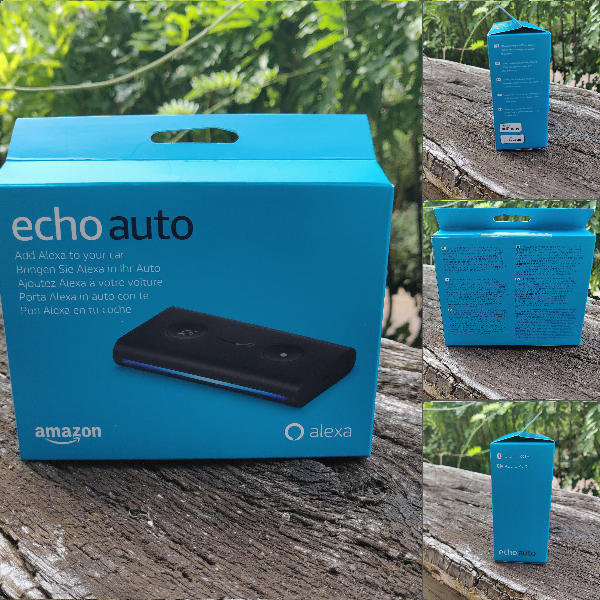 Echo Auto, comme tout produit de la gamme Echo, nous parvient dans une boîte bleu avec sur le devant, un visuel quelque peu en relief du device avec la mention « Ajoutez Alexa à votre voiture » en 5 langues différentes. À droite, on apprend qu’il fonctionne via Bluetooth ou bien en jack auxiliaire, tandis qu’à gauche, toujours en 5 langues différentes, nous avons quelques exemples de choses à demander à Alexa. C’est à l’arrière que nous avons le plus d’informations : contenu de la boîte, fonctionnalité, pré-requis, compatibilité, mais nous y reviendrons en détails juste après.