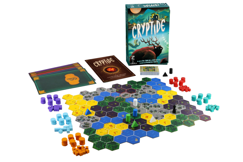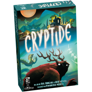 Vendu 29 euros, Cryptide est destiné à deux à cinq cryptozoologues (particulièrement bon à 3-4) de 10 ans et plus, ses parties durent environ 30 minutes. Certains lecteurs très attentifs me feront peut-être remarquer que la boîte n’indique que 3 à 5 joueurs, mais une variante pour deux a été mise à disposition en ligne a posteriori, et elle requiert assez peu d’altérations pour qu’on la présente en même temps que les règles « normales ».