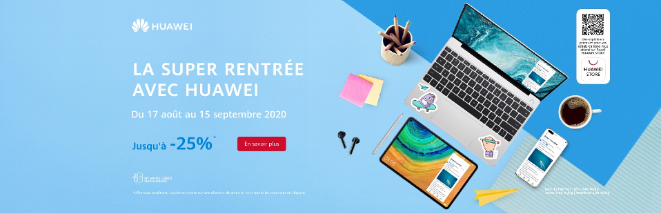 Le 17 août, Huawei a donné le top départ de sa campagne « Back To School », l’occasion idéale de s’équiper de matériel en tout genre, tout en profitant de promotions pouvant aller jusqu’à – 25%. Beaucoup de produits sont concernés par la campagne, qu’il s’agisse de smartphones, tablettes ou encore PC. Toutes ces offres sont accessibles et disponibles sur le site de la marque. En attendant, voici une première liste non exhaustive pour vous mettre dans le bain de la rentrée.