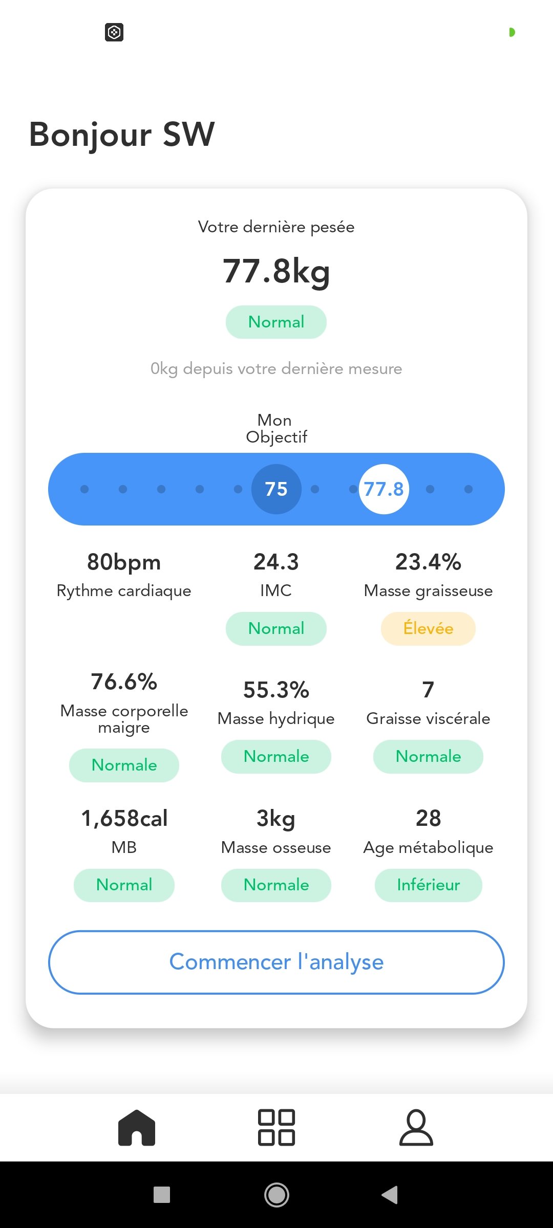 Une fois que l’on est placé sur la balance en ayant activé son téléphone, on découvre sur ce dernier les dix mesures promises.