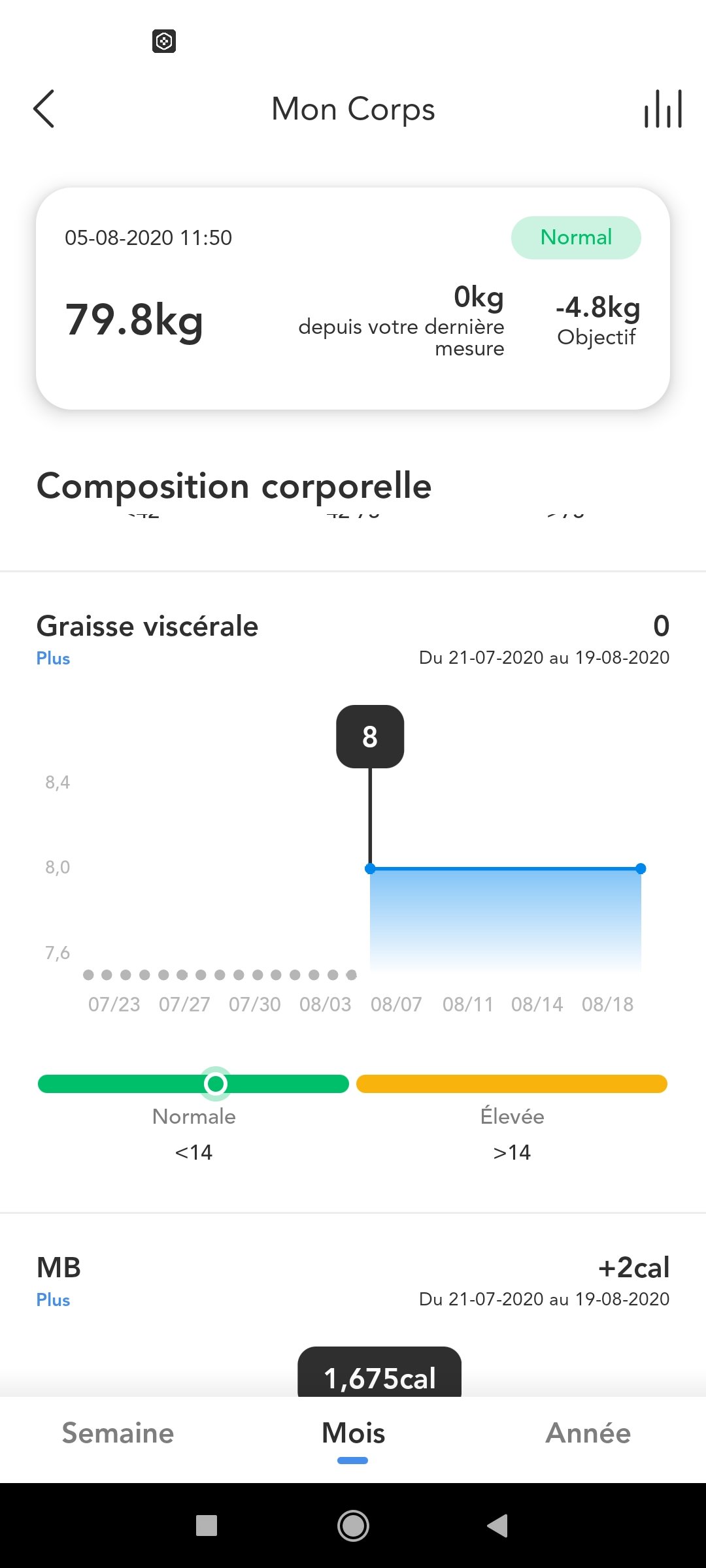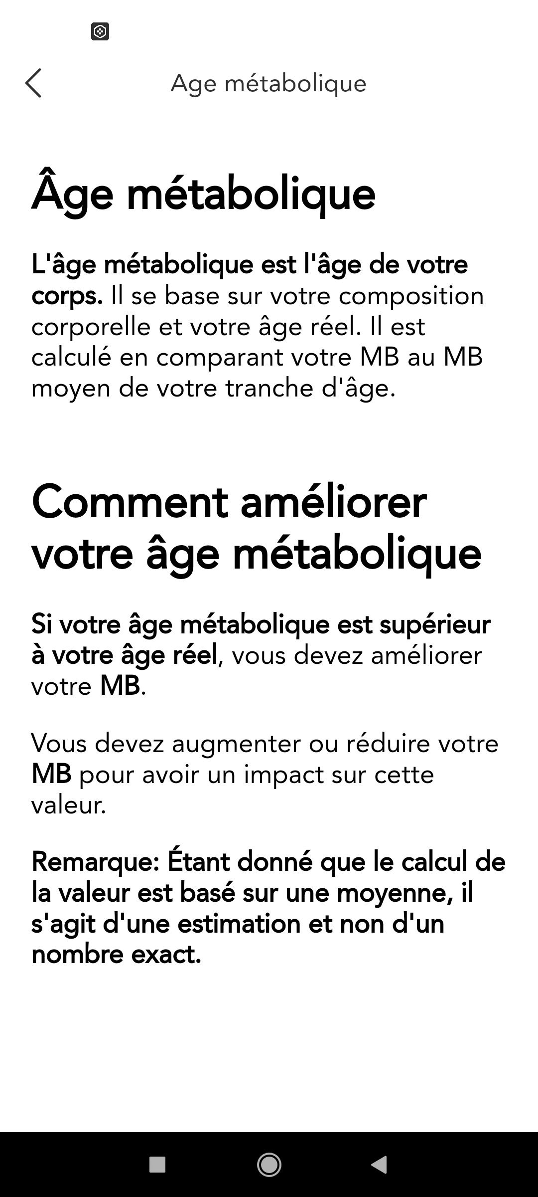 En outre, chaque donnée est accompagnée d’une définition (bienvenue pour la BMI ou la BMR par exemple !), et dans le cas de données problématiques (sur la masse grasse par exemple), de conseils très minimalistes pour trouver une solution, avec la recommandation bienvenue de consulter un professionnel de santé, dont rien ne vaut le suivi. La Sensori n’est en aucun cas là pour le remplacer, mais pour vous aider à déterminer s’il y aurait peut-être un problème, et pour accompagner au quotidien vos choix déjà éclairés, voire vous aider à adopter une meilleure discipline personnelle.