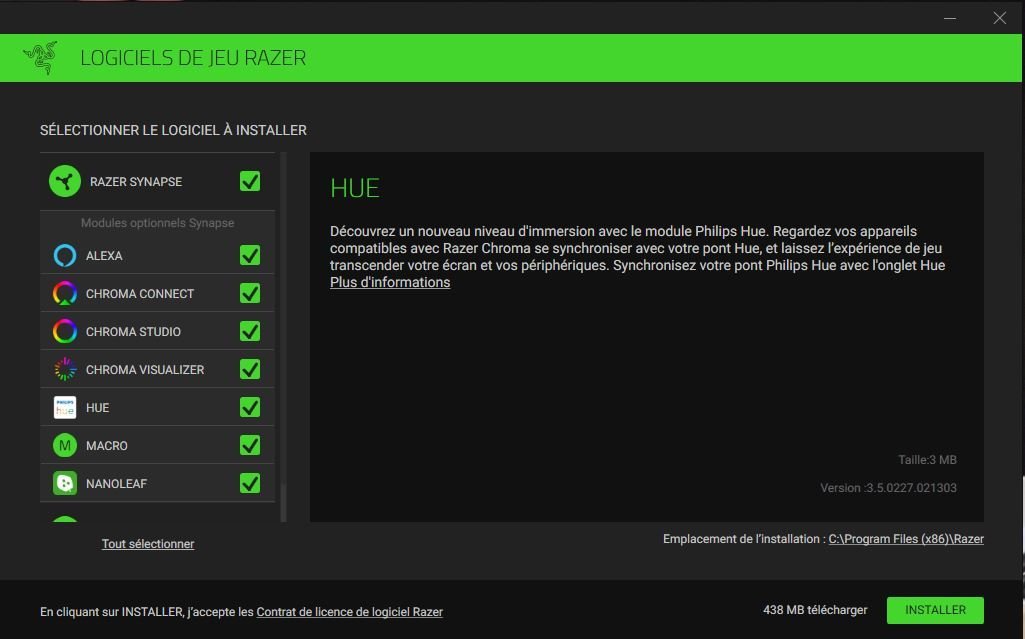 Dès l’installation du clavier, celui-ci nous propose d’installer Synapse qui sera très intéressant pour la partie cosmétique de votre matériel. On notera par ailleurs que les couleurs peuvent s’accorder à votre système d’éclairage « Philips Hue » ou même des Nanoleaf. Une fois cette étape passée, vous retrouvez les différents modes possibles allant des modèles prédéfinis à « Chroma Studio ». Cet add-on va vous permettre de totalement créer vos effets et votre ambiance 100% personnalisée.