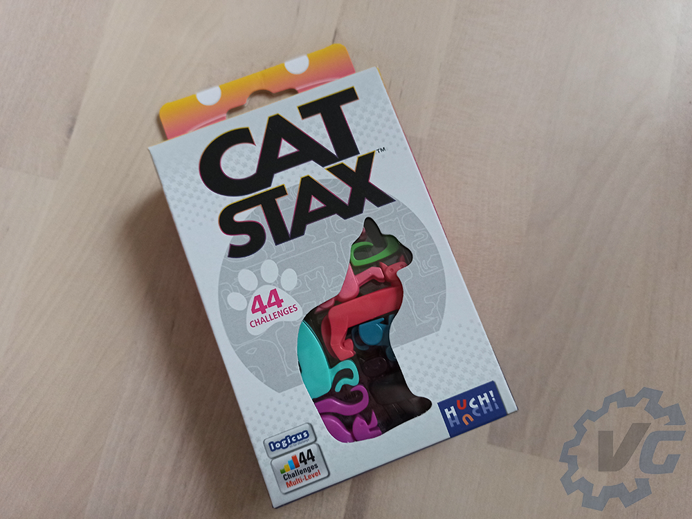Sinon, quel est le but de Cat Stax ? Il s’agit de « petits » puzzles en 3D sur lesquels nous allons devoir placer le maximum de figurines en forme de chats afin qu’ils entrent parfaitement dans la forme imposée. Selon le niveau de difficulté, il faudra le faire en une à trois couches superposables. Cat Stax est produit par l’éditeur Huch! (Forum Trajanum, Rajas of the Ganges, Keyflower) dans la gamme Logicus, et localisé par Atalia.