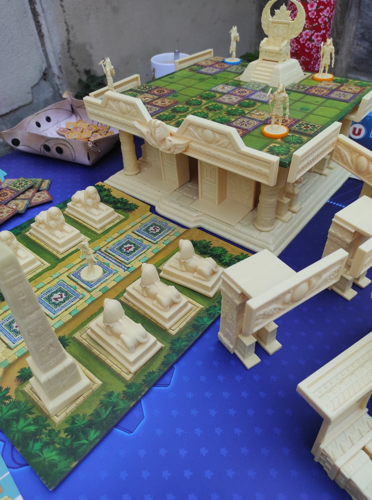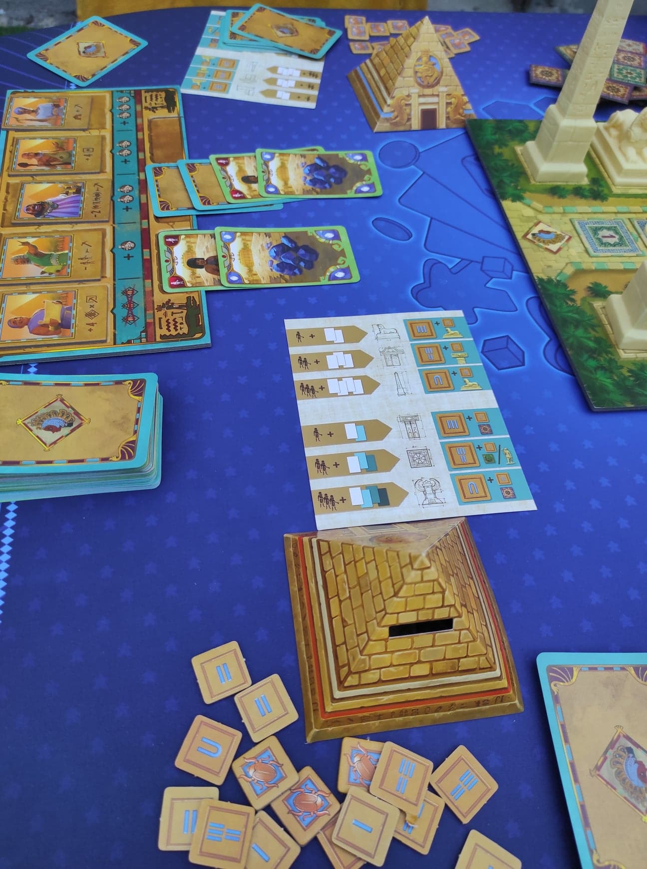 Ce jeu pharaonique, sans mauvais jeu de mots (enfin si, un peu), frappe aussi par son honnêteté : on n’y retrouve pas de faux solo, pourtant un passage obligé en 2020, pas de pseudo-variantes coopératives ou en équipes, les auteurs ont même permis de le pratiquer à deux (ce qui n’était pas possible dans la version précédente) en retirant cependant la possibilité de le pratiquer à cinq… C’est qu‘ils ont tenu à être fiers de leur jeu aujourd’hui comme ils l’avaient été en 2006, avec les ajustements requis par l’évolution du jeu de société et par le recul, une démarche louable qui aboutit à un jeu familial très satisfaisant à 3 ou 4 architectes notamment et matériellement extraordinaire.