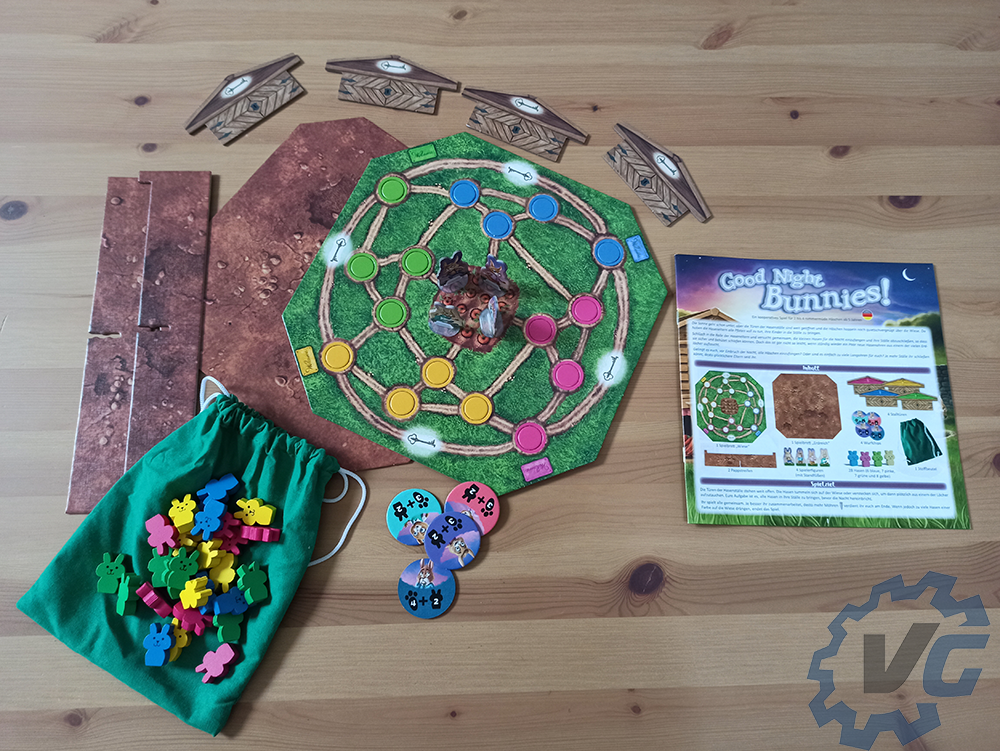 Quel est le but de Good Night Bunnies ? Vous incarnez les parents lapins et devez faire rentrer les petits lapins dans leurs clapiers respectifs afin qu’ils soient en sécurité et que vous puissiez aller vous coucher. Ce n’est pas une mince affaire puisqu’à chaque nouveau tour, de nouveaux petits lapins surgissent dans la prairie. Ce jeu est à jouer en équipe. Si chacun joue pour soi, il sera difficile de remporter la partie.