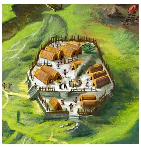 Leur figurine Chef et leur cinquième villageois sont placés sur le Village, au Sud-Ouest de l’île. En outre, ils récupèrent un plateau personnel, en double-couche afin que les marqueurs ne sortent pas des pistes de ressources (joncs, œufs, bois, perles) et pour procurer un petit effet luxueux qui fonctionne toujours assez sur moi.