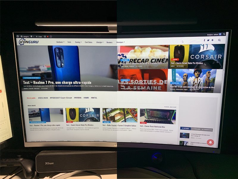 Pour la partie de ce test, je me suis fondé sur deux lieux de vie bien distinct à savoir, mon bureau dans lequel je passe le plus clair de mon temps libre à dévorer divers jeux ou séries et mon lieu de travail, un open space sur-éclairé par des baies vitrées et dont la lumière varie sans arrêt. Vous vous doutez bien que passer 35 heures sur un ordinateur dans le second lieu n’aide que très peu à une bonne santé oculaire !