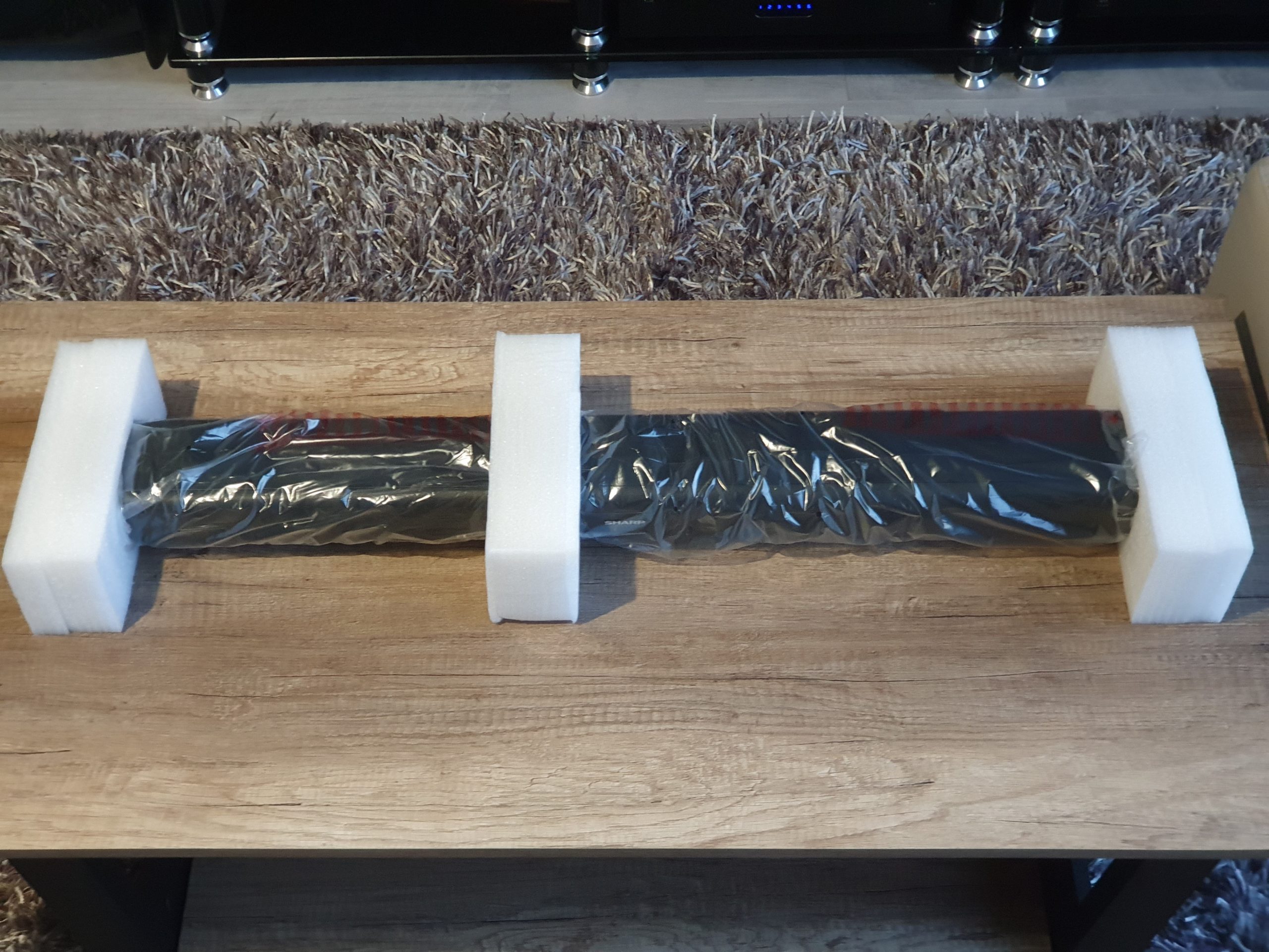 Et nous retrouverons bien évidemment la barre, bien emballée dans du plastique et du polystyrène, ainsi que le caisson de basse.