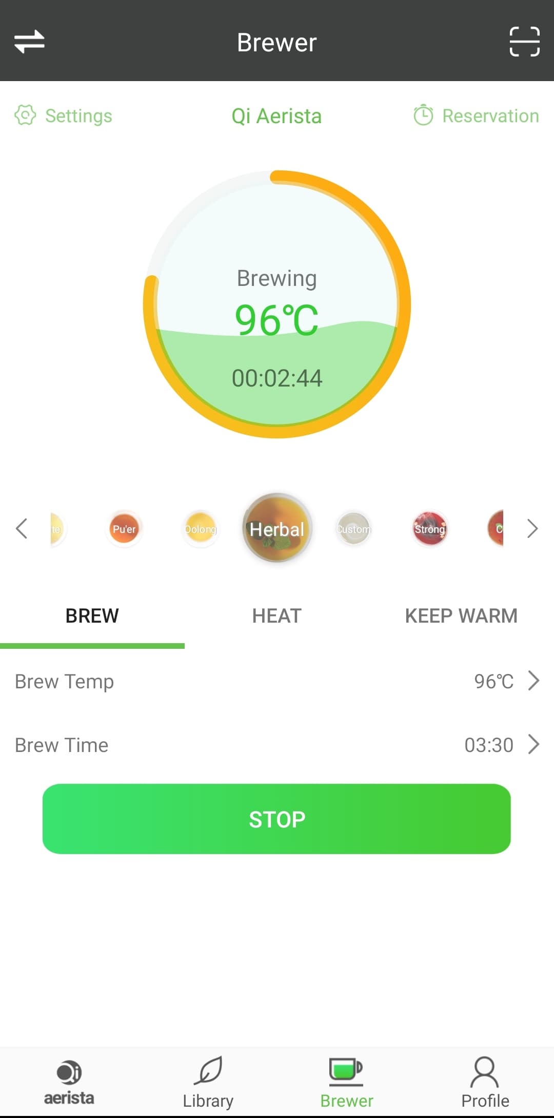 Et surtout de personnaliser vos infusions. Pour chacun des types, vous pouvez en effet définir la température d’infusion, le temps d’infusion, la température à laquelle la Qi Aerista gardera le thé et pendant combien de temps, dans le cas où les paramètres par défaut ne vous conviendraient pas. Indispensable quand vous souhaitez faire infuser très délicatement des feuilles perdant tout arôme à une température trop forte par exemple. On appréciera que l’appareil conserve ensuite toutes ces modifications en mémoire pour en faire ses nouveaux paramètres par défaut, et ainsi se plier vraiment à nos préférences. Qu’il existe un mode « Personnalisé » vous évitera d’ailleurs de toucher aux paramètres des types d’infusion « normaux », bien vu.