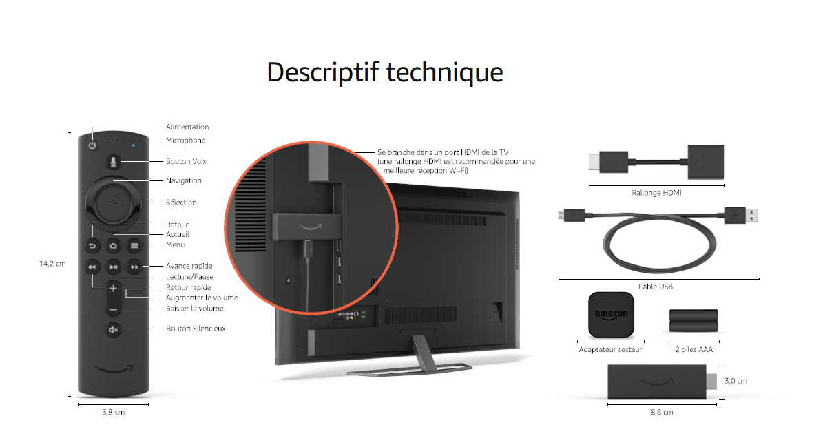 - Moins d’encombrement, plus de contrôle : la télécommande vocale Alexa vous permet d’utiliser votre voix pour rechercher et lancer du contenu à partir de plusieurs applications. Vous pouvez également contrôler la mise sous/hors tension et le volume de votre TV et barre de son, sans télécommande supplémentaire.