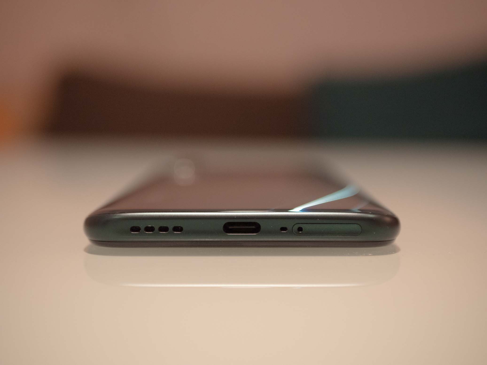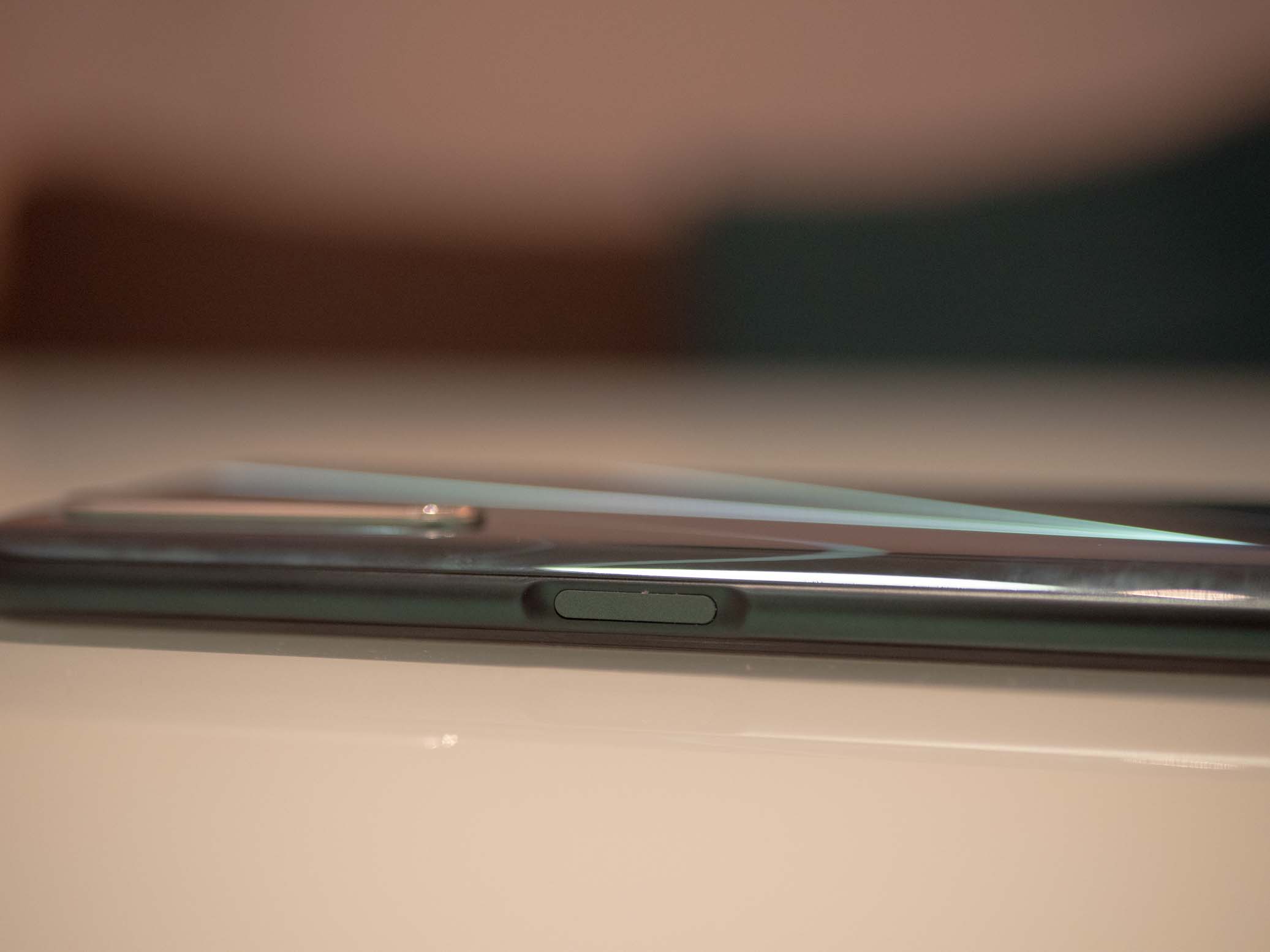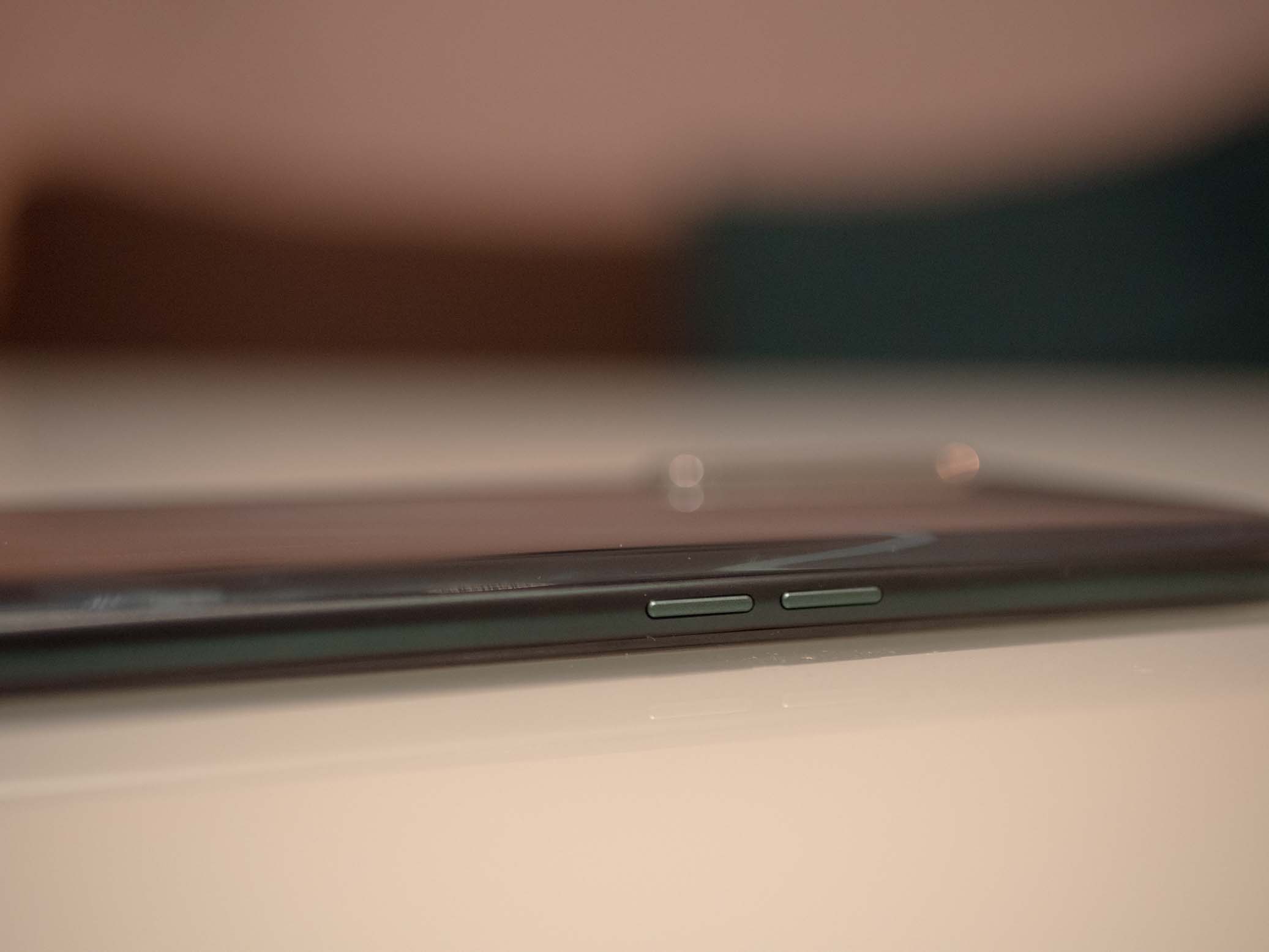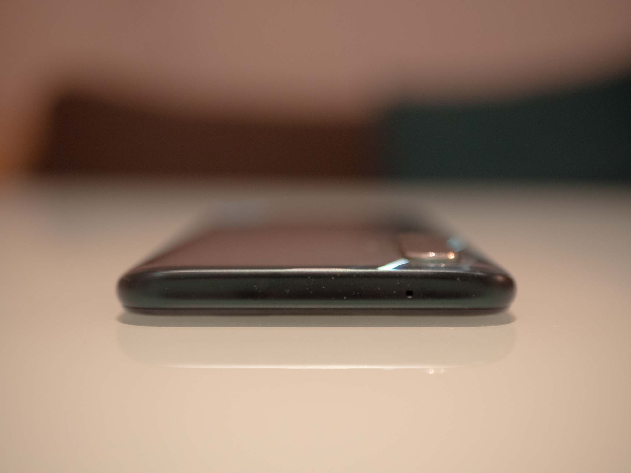 Comme le 7 Pro, le smartphone est très grand puisqu’équipé d’un écran de 6.57 pouces de diagonale. Les bordures sont plutôt fines et permettent donc de rester dans un gabarit plutôt correct une fois en main. Ce n’est que le menton du smartphone qui comme d’habitude dénote un peu du reste. Les bordures sont plates et rendent la prise en main assez agréable, sans tailler les doigts. Le design global est assez réussi avec ce dos en plastique brillant vert très réussi et aux reflets très esthétiques, le tour du smartphone est quant à lui totalement mat et toujours dans la même teinte de vert. Par contre il hérite du gros soucis de ce genre de design, à savoir une très grande sensibilité aux traces de doigts, les plus maniaques seront avertis. Il semble néanmoins assez résistant aux agressions de la vie quotidienne comme un trousseau de clé par exemple. Enfin, les finitions sont très soignées sans bruit de plastique bas de gamme et sans jeu particulier dans les boutons.