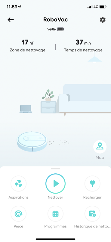 - Contrôle en temps réel : vous savez précisément où RoboVac se trouve et quelle tâche il est en train d’effectuer à tout instant.