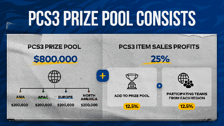 Les habitués du Battle Royale sud-coréen le savent déjà, PCS rime avec récompenses PCS (oui, je ne suis pas un grand poète ! 🙂 ). En effet, les joueurs pourront célébrer le PCS3 en achetant et s’équipant d’une série d’objets en jeu, dont le quart des bénéfices sera distribués aux participants des quatre régions composant la compétition. Le huitième du montant sera effectivement ajouté à la cagnotte mondiale de 800K$ quant les autres 12,5% seront également répartis entre toutes les équipes participantes. De plus, chaque achat donnera droit au joueur à au moins un coupon de vote permettant de pronostiquer sur la future équipe vainqueur du tournoi (et ainsi pouvoir gagner des points à échanger contre des articles exclusifs en jeu). Pour rappel, grâce à ces principes, les cagnottes des PCS1 et PCS2 avaient atteint respectivement 1,6 millions et 3,3 millions de dollars.