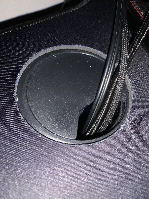 On retrouve par deux fois des passe-câbles, ce qui s’avère idéal pour le dual-screen. Grâce au compartiment inférieur, il est ensuite très facile de les rediriger vers votre tour et créer une parfaite organisation. Le module se veut d’ailleurs très pratique que ce soit pour les écrans ou pour la souris.