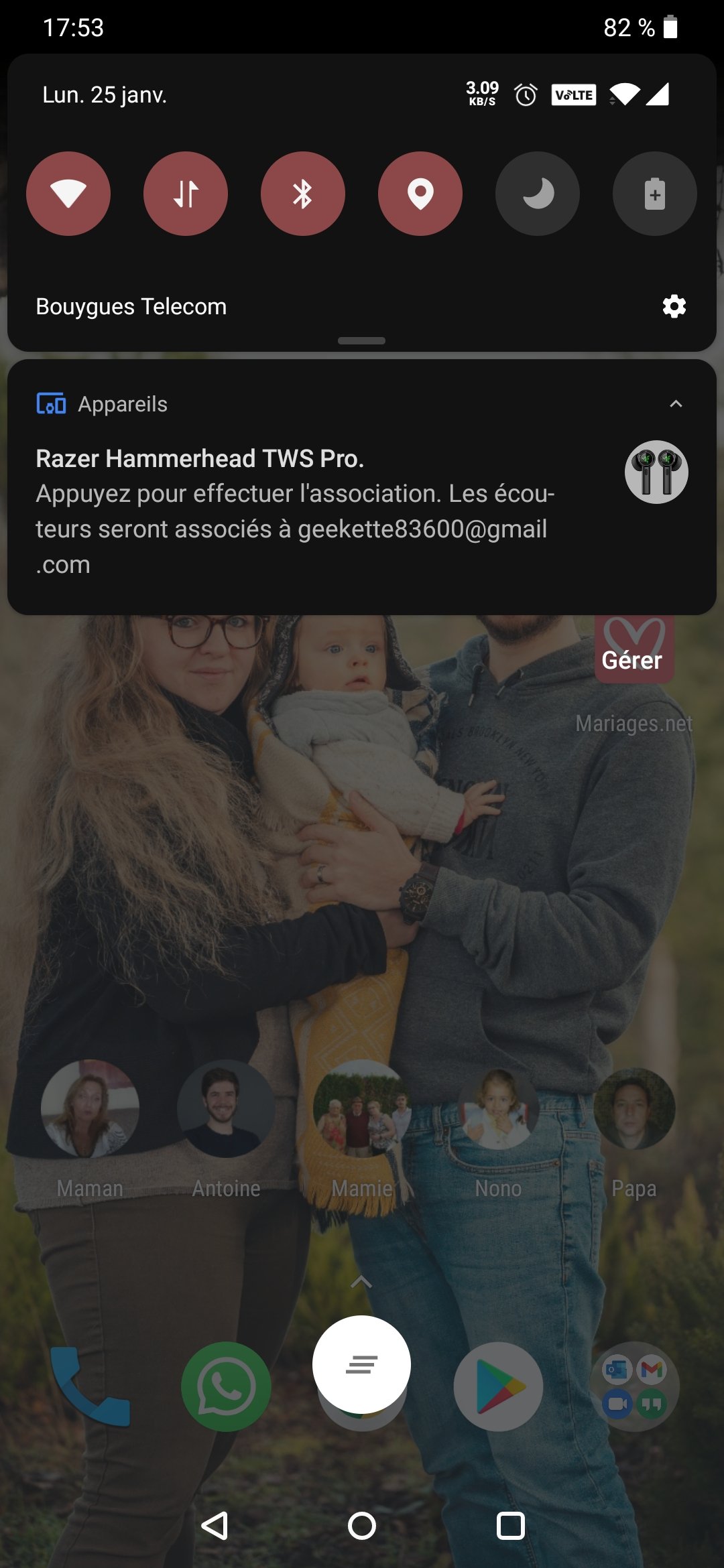 Pour connecter les Razer Hammerhead True Wireless Pro à un smartphone Android, il suffit d’ouvrir le boîtier pour que les écouteurs se mettent en mode appairage, pratique, simple, intuitif, vous n’aurez vraiment rien à faire, et ça c’est top. Compatibles avec la solution Fast Pair de Google, les écouteurs vous proposeront alors la connexion lorsque votre smartphone sera à proximité, mais aussi la possibilité de géolocaliser ces derniers en cas de perte.