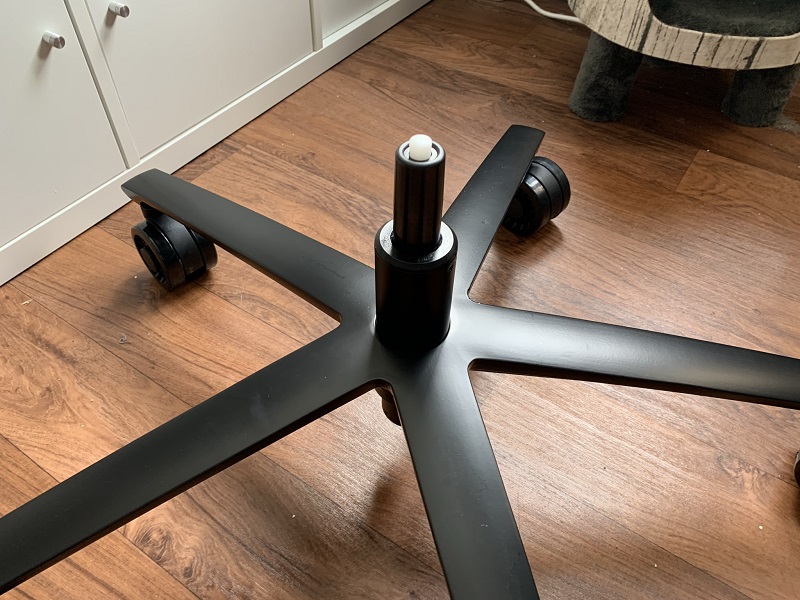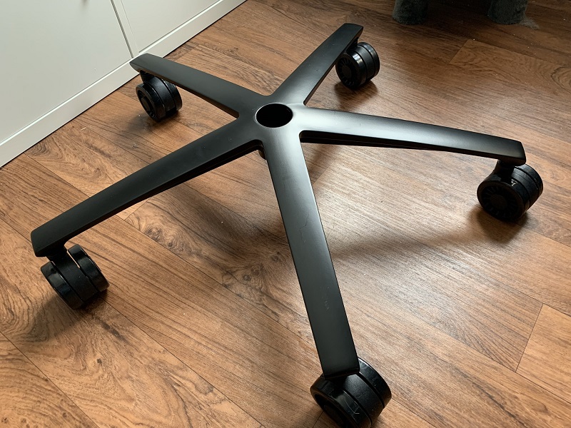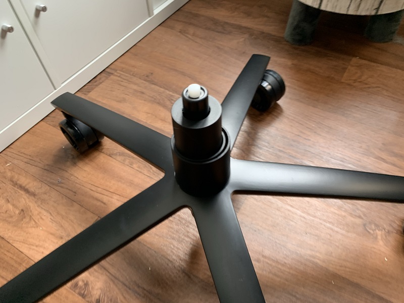Dès qu’on a notre seconde partie de fauteuil, il faut passer sur la partie inférieure. Afin d’installer notre base et ses accoudoirs. Ici, on vous conseillera de tout visser sérieusement au dernier moment. L’espace prévu est calculé au millimètre près et si un accoudoir est vissé trop près du centre, alors votre base ne pourra jamais être fixée.