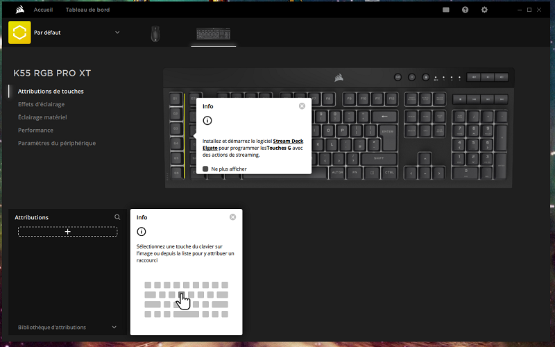 Si d’une part nous avons fait un vaste tour du propriétaire, ce nouveau clavier dispose toujours des atouts offerts par le logiciel iCue. Dans un premier temps, les six macros proposées par le clavier peuvent devenir de réels atouts.