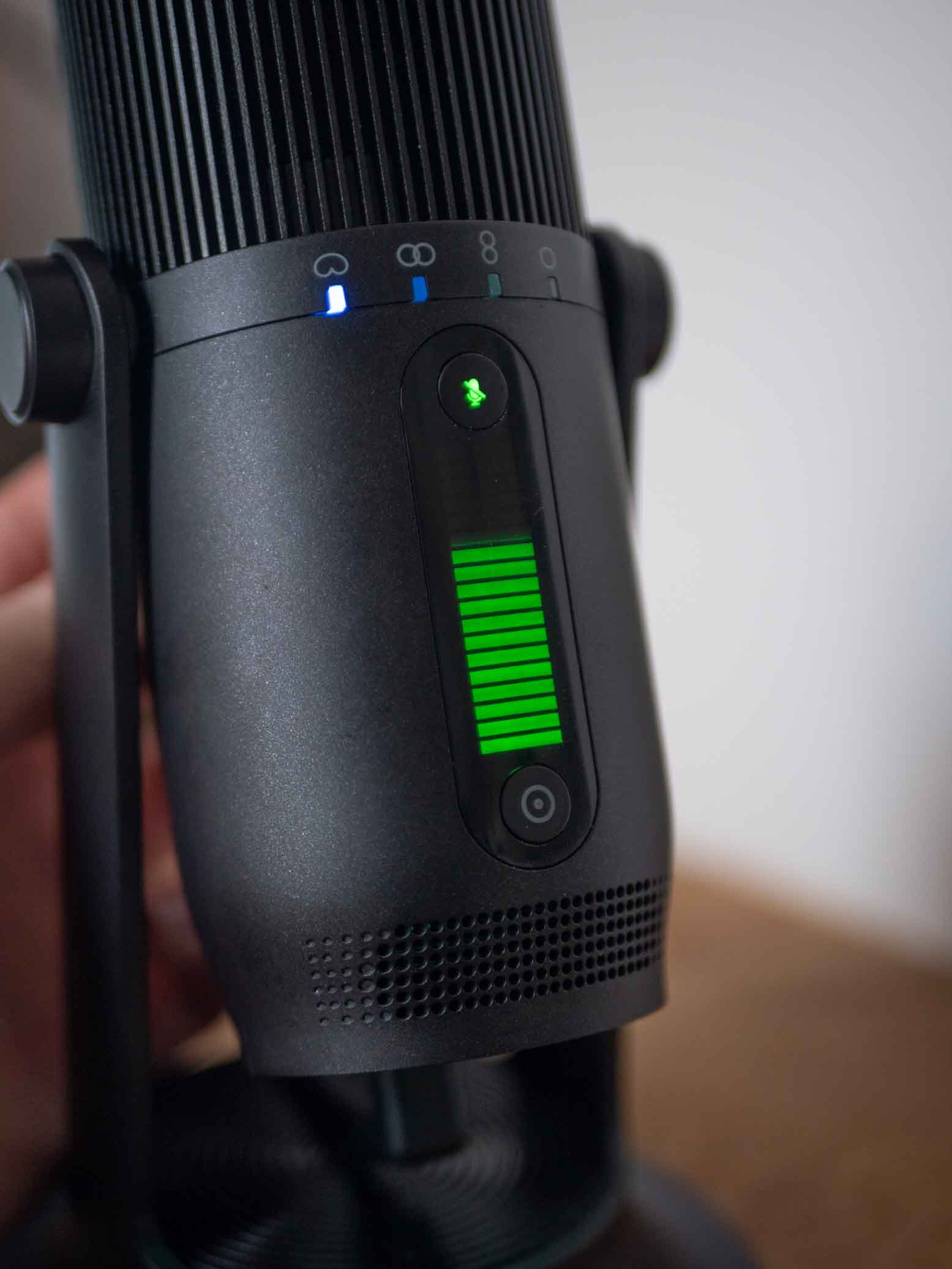 Enfin, une bande LED entoure la base du microphone pour les fans de RGB. Elle est puissante, agréable et peut être changée de couleur en appuyant sur un bouton situé lui aussi à la base. Notez qu’elle peut être complétement éteinte.