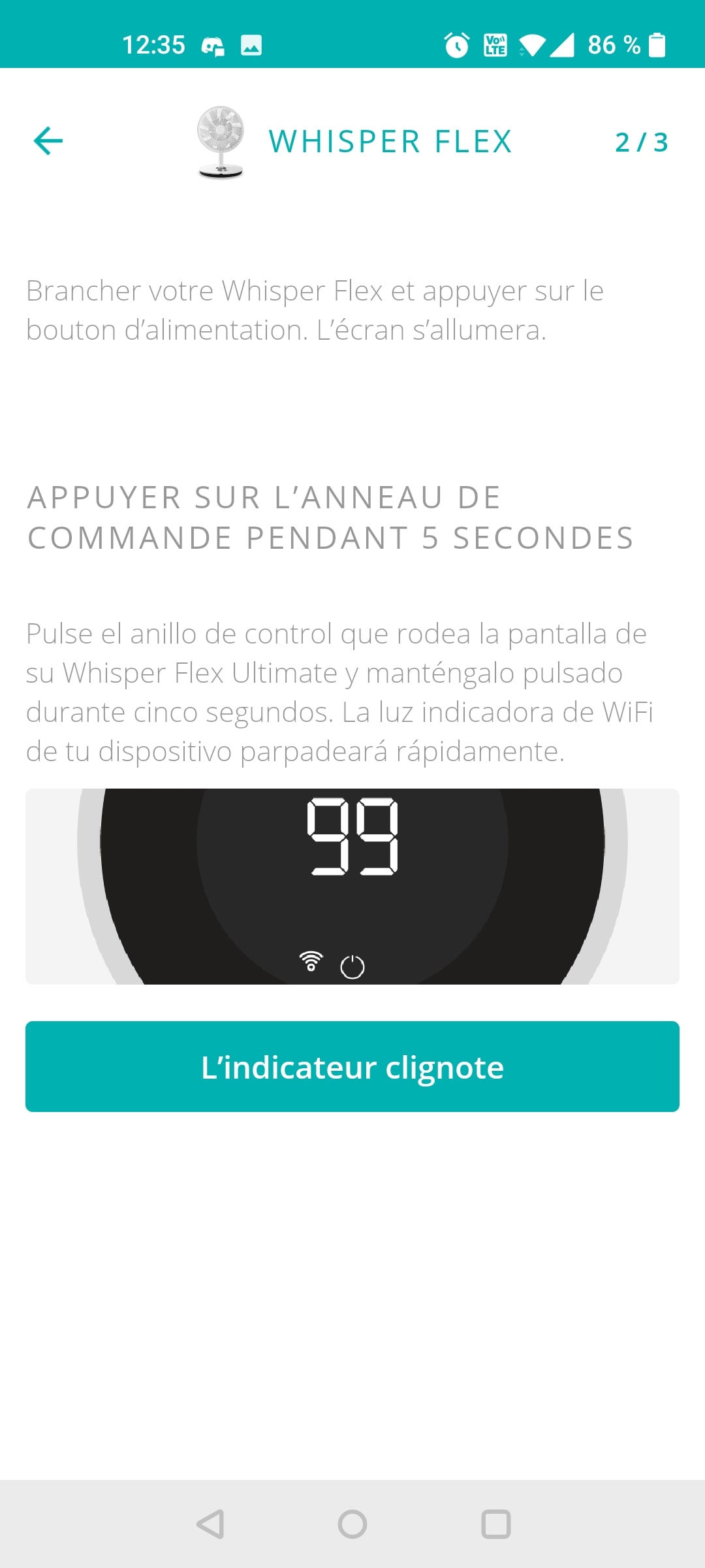 Commençons par parler de l’application. On vous demandera au départ de choisir votre modèle et de vous connecter au Wi-Fi. Tout vous sera indiqué sur l’application Duux, et je dois avouer que j’ai dû m’y prendre à maintes reprises. J’ai bien tenté plusieurs Wi-Fi, trois en tout, mais cela ne fonctionnait pas. En revanche, une fois que j’ai eu sélectionné le modèle Whisper Flex Ultimate, j’ai pu me connecter tout de suite. Peut-être que le Flex est trop récent ? En tout cas une fois cette modification effectuée, le ventilateur était bien connecté. Il faudra également, comme avec les produits Konyks, sélectionner un Wi-Fi 2.4 Ghz et non pas 5 Ghz. Dans mon cas, c’est donc mon répéteur qui a pris en charge notre nouveau compagnon.