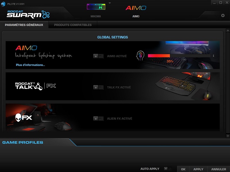 Avec le premier lancement du Roccat Magma, nous vous conseillons d’installer SWARM. Ce logiciel va surtout vous permettre de configurer l’effet esthétique de votre clavier. Comme nous en parlions un peu avant, il va s’agir d’une partie intégrante du Magma. Une fois l’installation effectuée, on va donc découvrir plusieurs fonctionnalités.