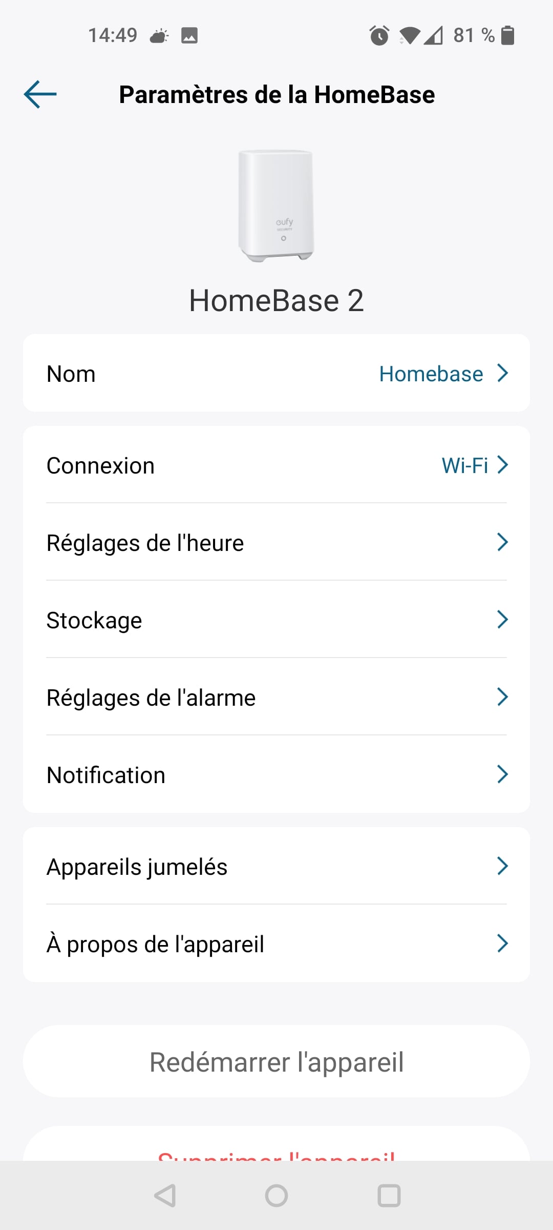 Comme vous pouvez le voir sur les quelques screenshots ci-dessus, il vous sera possible de personnaliser chaque mode comme bon vous semble en cliquant sur le petit écrou en haut à droite. Il vous sera également possible de paramétrer vos modules selon leurs fonctionnalités. Par exemple pour la HomeBase, vous pourrez régler l’heure, l’alarme, les notifications, changer son nom, le stockage disponible (15 Go au total) et j’en passe. Petit bémol concernant le son de l’alarme. Si on peut bien monter ou baisser le volume, même au maximum, le son n’est pas très décourageant…
