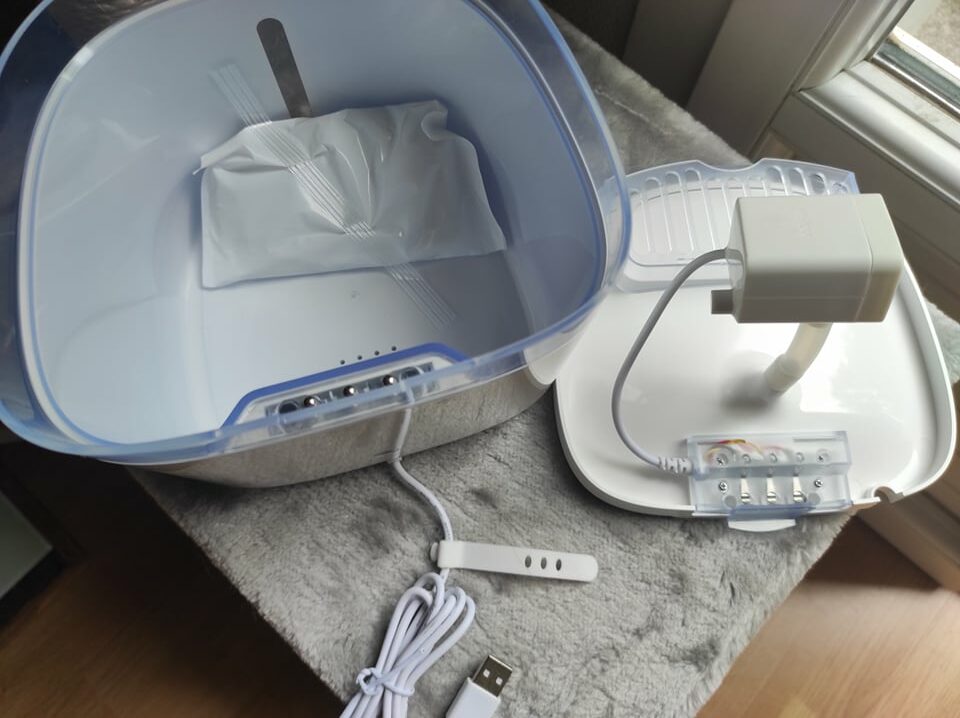 Enfin, le nettoyage de la Fresco Mini est élémentaire, comme on pouvait s’en douter au moment du montage, puisque l’on peut aisément retirer le « couvercle » et séparer le réservoir du « corps » de la fontaine.