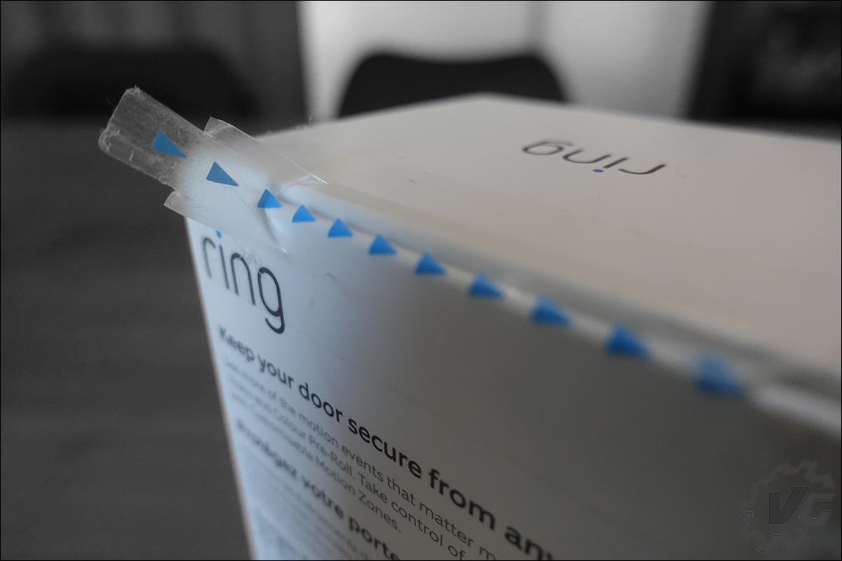 Avant de débuter l’inspection du contenu de cette boite, je voulais revenir sur un petit détail mais pour vous dire jusqu’où va Ring dans son packaging. Tous les produits Ring que j’ai pu tester ces derniers mois disposent d’une ouverture rapide afin de « desceller » la boite. Pas besoin de cuter, l’ouverture est facilité par cet autocollant déchirable.