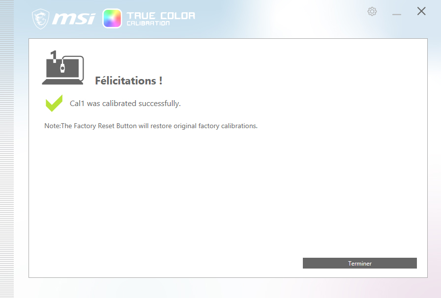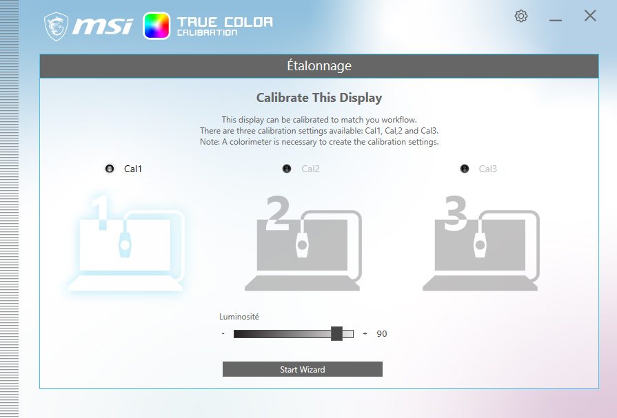 Il est également possible d’étalonner l’écran en automatique avec le logiciel fournit par MSI mais le résultat était pire que les profils préenregistrés dans l’écran. Nous avons donc fait l’impasse sur cet outil.