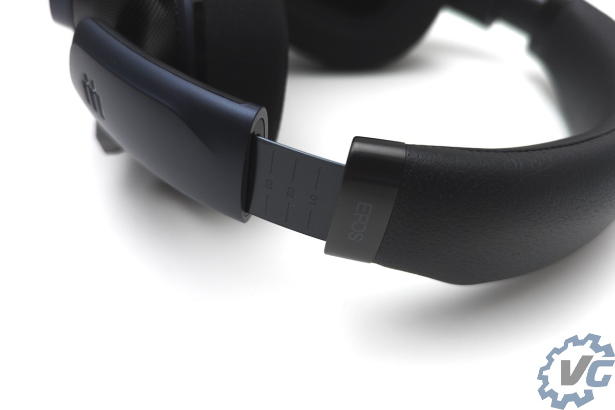 Passons maintenant à l’arceau de ce EPOS H6PRO, de très bonne facture et très confortable grâce à sa mousse. Une mousse qui dispose d’un revêtement simili cuir. Ce casque peut se régler sur 16 niveaux, il ne faudra pas le mettre trop serrant pour ne pas avoir un appui trop important. Dans mon cas, je l’ai mis sur le niveau 6 1/2 soit le 13ème niveau et il est ni trop lâche ni trop pressant. On aurait cependant aimer plus de souplesse dans le casque ou dans les mousses des haut parleur plus souples.