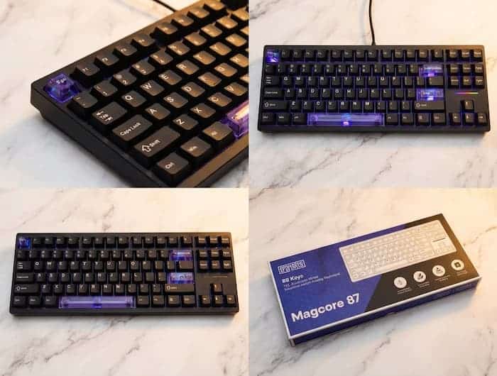 En 2026, ce n’est sans doute pas l’affaire la plus facile que de tenter de percer sur le marché du périphérique. Le MagCore 87 a donc attiré la curiosité de nos confrères et a rapidement suscité l’étonnement. De prime abord ce qui frappe tout de suite avec ce modèle c’est son poids significatif. On n’est clairement pas sur un petit jouet en plastique mais bien sur un châssis intégralement usiné en aluminium qui flirte avec les deux kilos Esthétiquement le design reste sobre et très industriel avec des lignes tranchées et une finition noire micro-texturée qui ne craint pas trop les traces de doigts gras après une session pizza. Le format est un tkl classique donc sans pavé numérique ce qui permet de libérer de la place pour la souris sans sacrifier les touches de fonction essentielles. Sous le capot on retrouve une structure gasket mount pour un confort de frappe plus souple et surtout des touches en pbt double shot qui ne brilleront pas au bout de trois semaines.