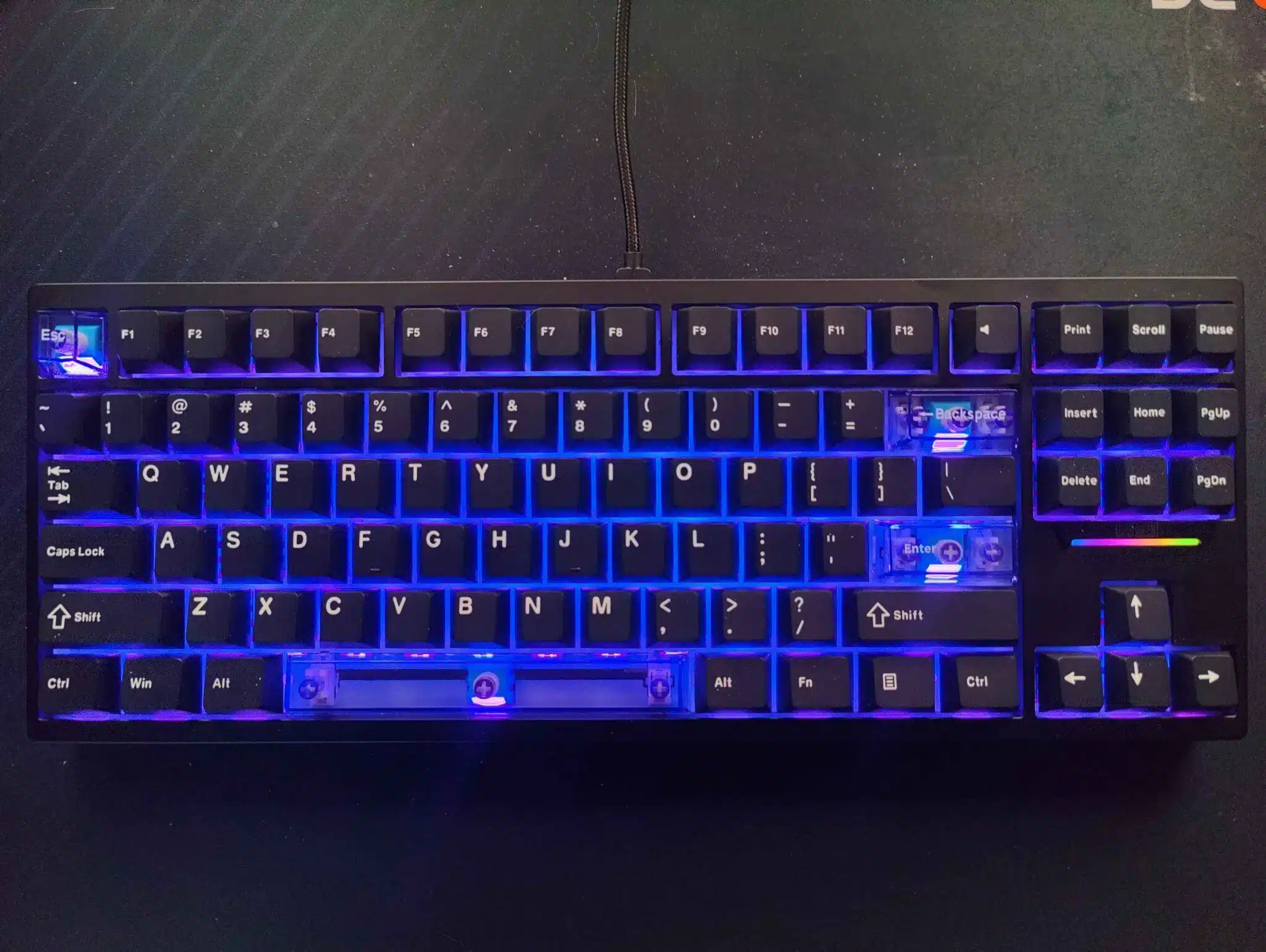 | éclairage | rgb par touche (south facing) + rgb logo latéral |