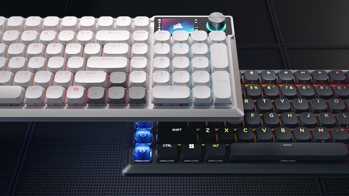 Pas besoin d’avoir des yeux d’experts pour remarquer très vite les fameux switches opto-mécaniques de type OPX Low-Profile. Ces petits interrupteurs subtilement pré-lubrifiés offrent une frappe linéaire extrêmement douce sous les doigts. C’est un aspect véritablement central de la conception globale puisqu’il intègre carrément cinq couches distinctes d’insonorisation interne. Non seulement le son est parfaitement maîtrisé, mais encore la réactivité pure reste époustouflante lors des sessions intenses. L’appareil affiche fièrement un écran IPS d’environ deux pouces ainsi que d’une molette rotative fort pratique à l’usage. En outre, l’intégration logicielle est poussée à son paroxysme avec la présence très remarquée de six touches intimement liées au Stream Deck. Tout d’abord, ces nombreux ajouts astucieux transforment cet objet de saisie en un véritable centre de commande autonome pour les streamers chevronnés. La connectivité globale n’est pas en reste puisque la bête gère le sans-fil via un dongle dédié très performant. Corsair a véritablement mis le paquet en proposant un taux d’interrogation démesuré de huit mille hertz grâce à la technologie Slipstream V2. Puis, on note l’ajout plutôt bienvenu de la fonction FlashTap afin de gérer sereinement les frappes directionnelles. Également, le fabricant inclut généreusement dans la boîte quatre packs de trois touches supplémentaires pour personnaliser intégralement vos macros. Le rétroéclairage scintillant vient parfaire cette allure luxueuse sans jamais sombrer dans l’excès criard. Enfin, cette magnifique création allie à la perfection une esthétique vraiment racée avec des composants de très haut de gamme.